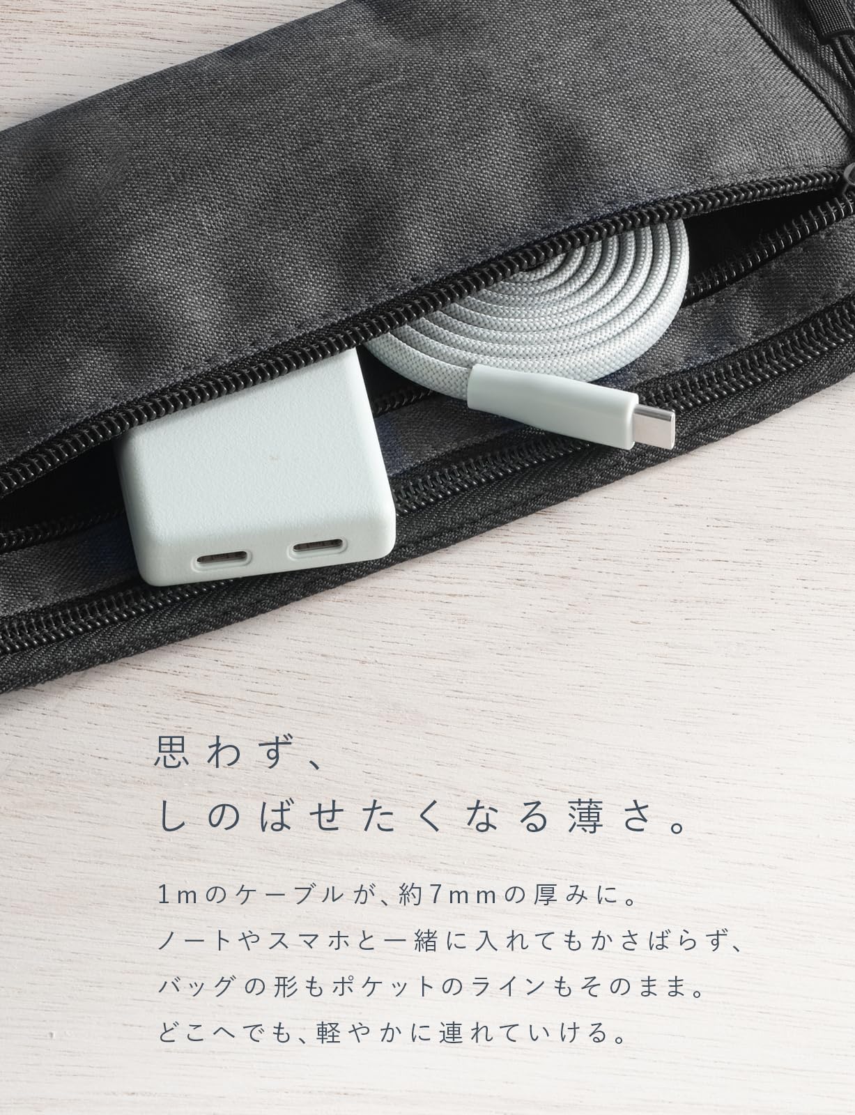 ■ 【携帯性に優れたデザイン】薄いフラットケーブルに磁石を内蔵。