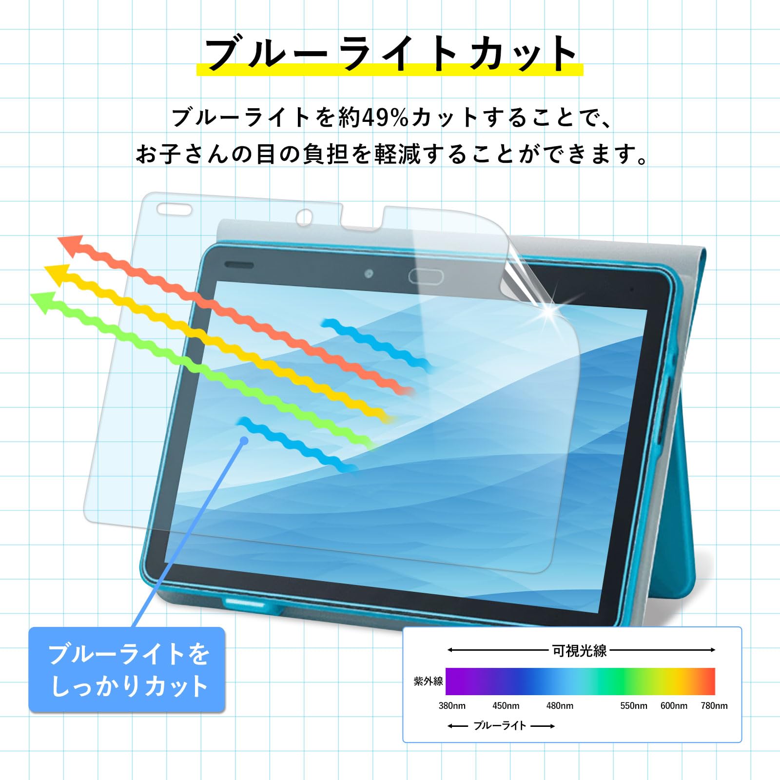 ■ 【ブルーライトカット】ブルーライトを約49%カットすることで、お子さんの目の負担を軽減することができます。