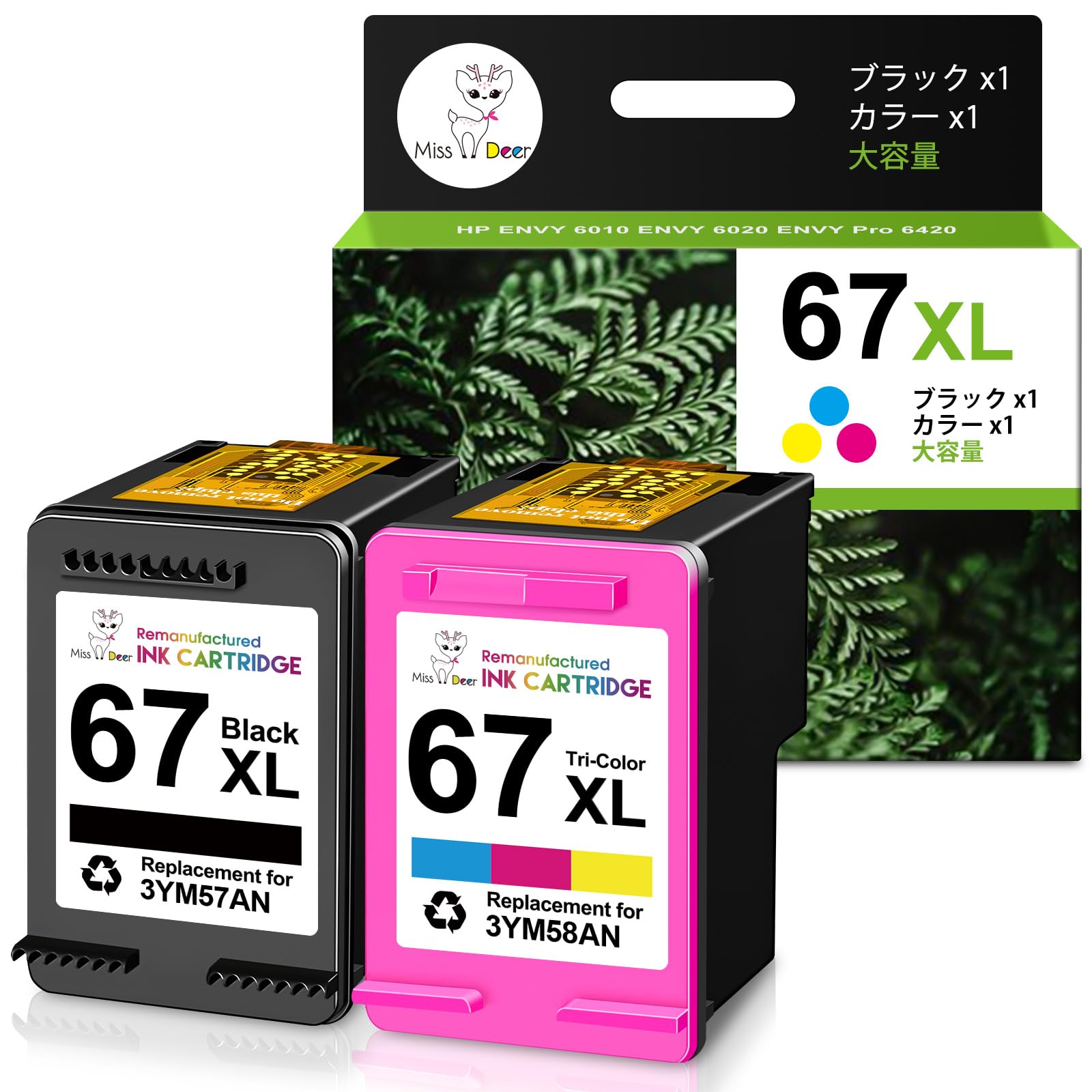 HP 67 XL (ブラック 増量 + カラー 増量)リサイクル インク 残量表示付 2個セット 対応機種:■HP ENVY 6000/ ENVY 6020 / ENVY Pro 6420