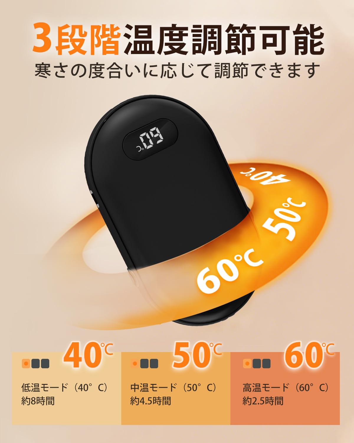 ■ 【3段階温度調整・LEDデジタル表示】3段階の温度(低温40℃、中温50℃、高温60℃)設定があります。