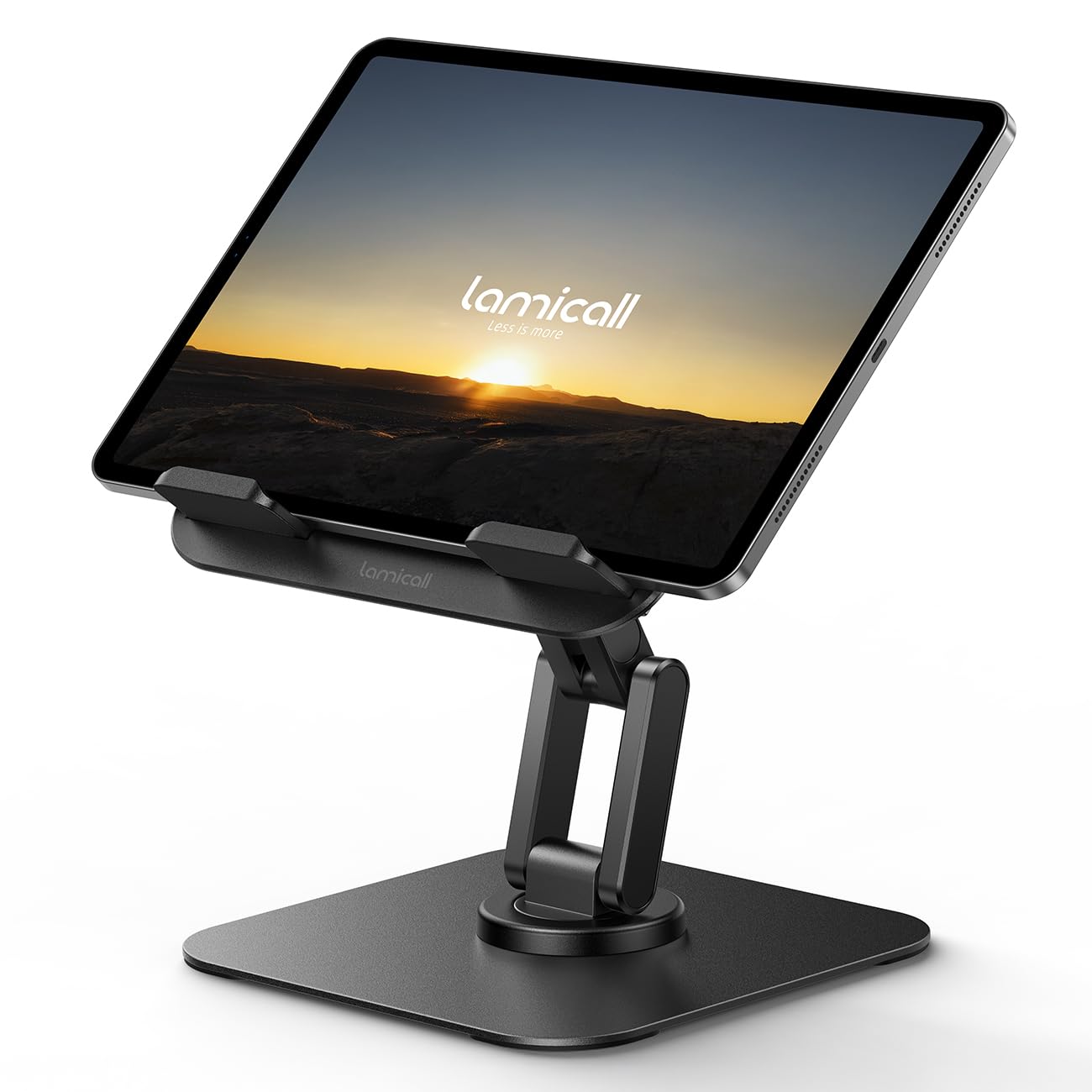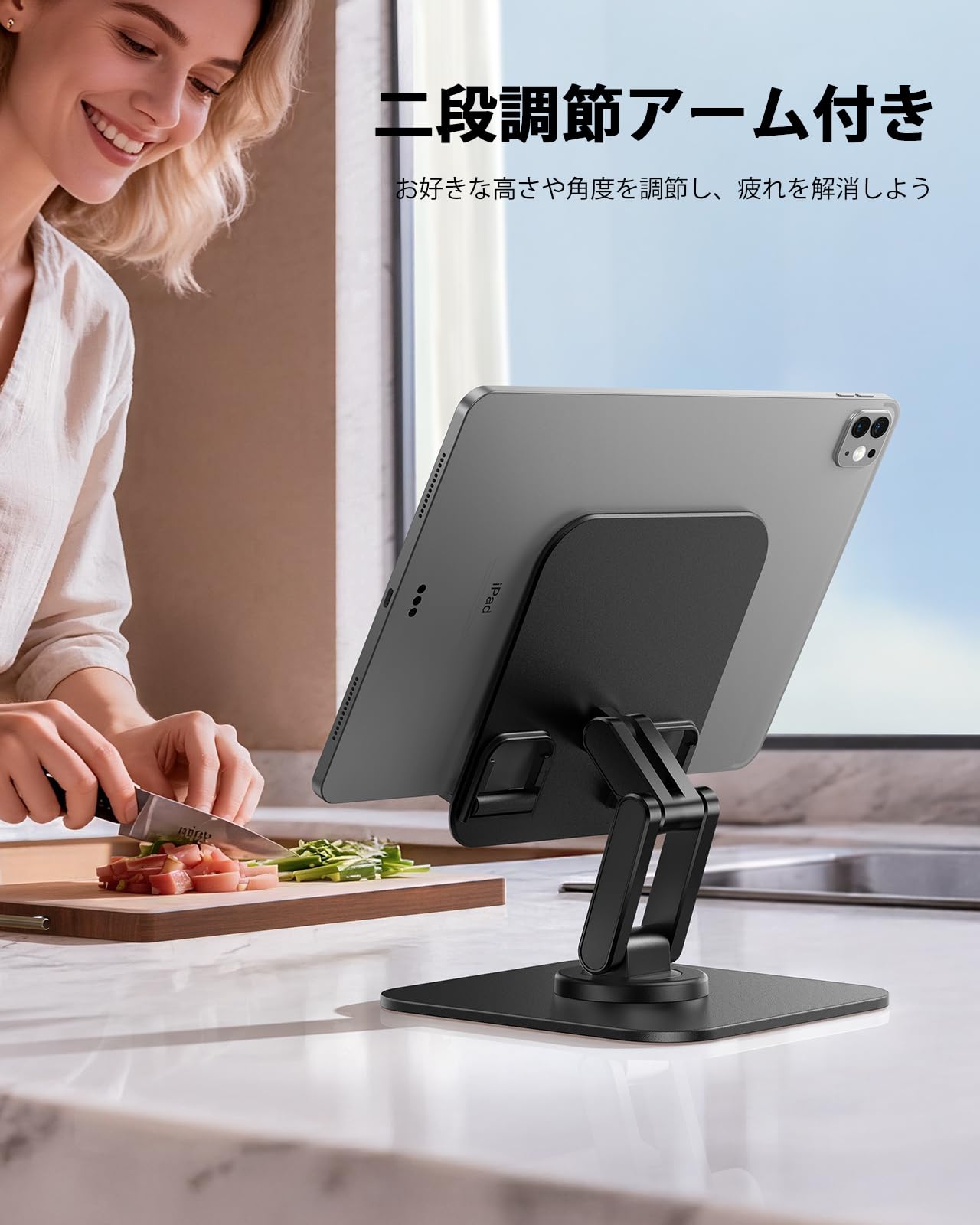 【360度回転】Lamicall タブレット スタンド 二段調節アーム : 折りたたみ ipad スタンド 18㎜厚さに対応 角度調整 たぶれっとすたんど アルミ製ベース 安定 縦 横置き台 卓上 立てる 軽量 持ち運び 動画 ゲーム 生放送 会議 在宅 キッチン キャンプ 4.7-13インチ ipad 2025 fire hd スイッチ kindle iPhone Nexusシリーズに対応