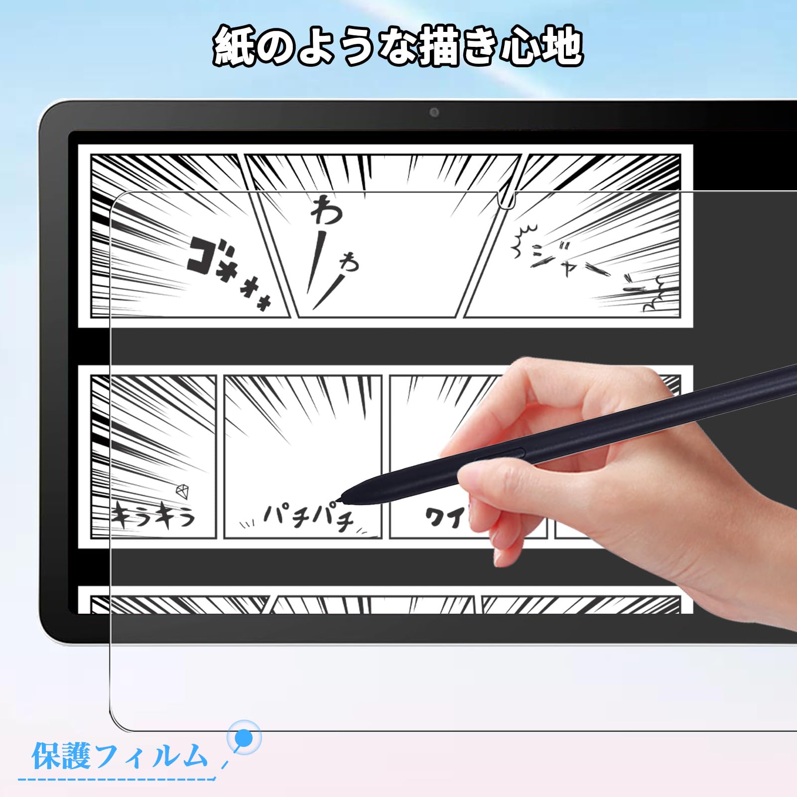また、ガラスフィルムより、スライドせず、マットな表面でスクリーンに書いても滑 りません。