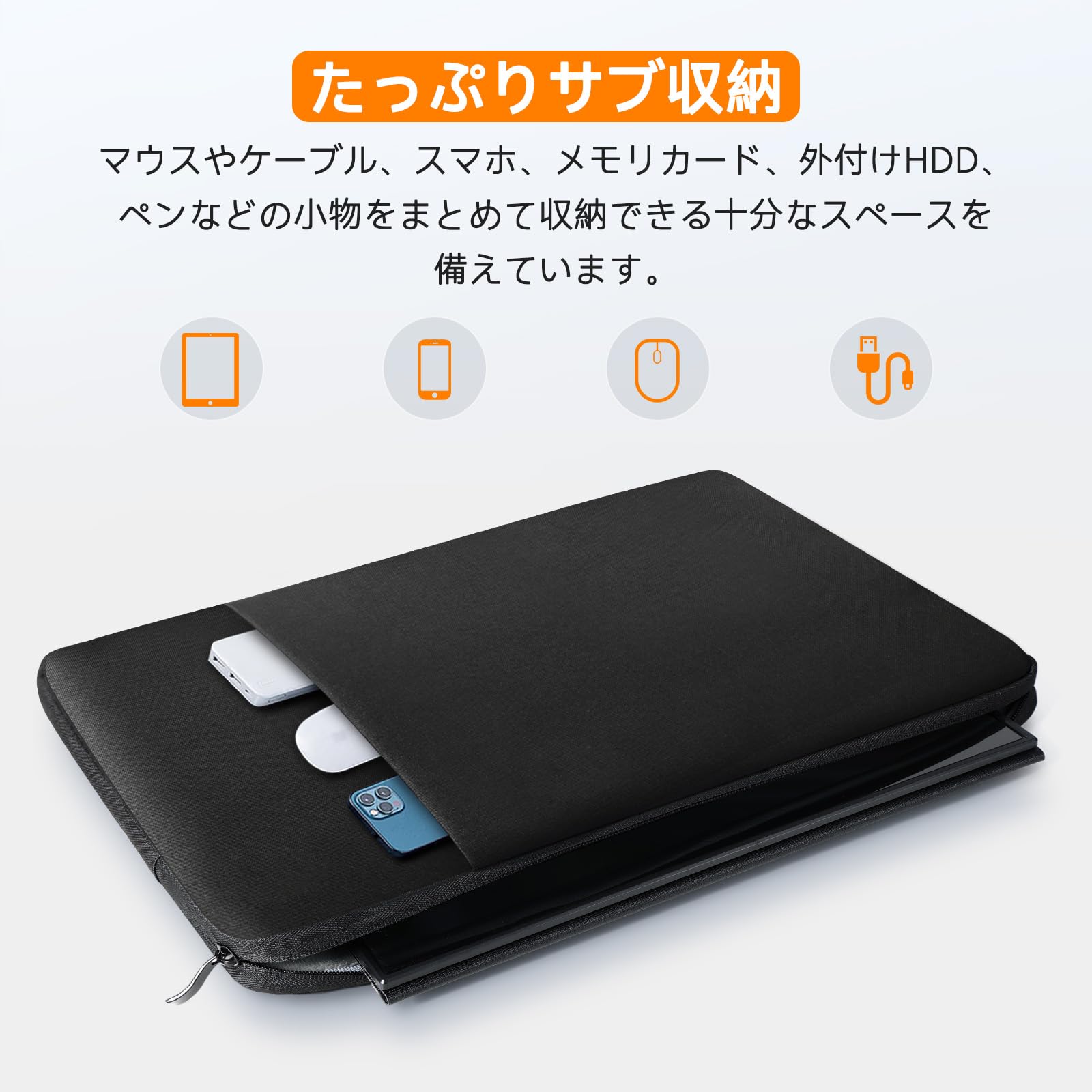 ■ 【大容量収納】 パソコンケースのメインポケットは15.6/16インチまでのノートPCやポータブルディスプレイを収納可能。