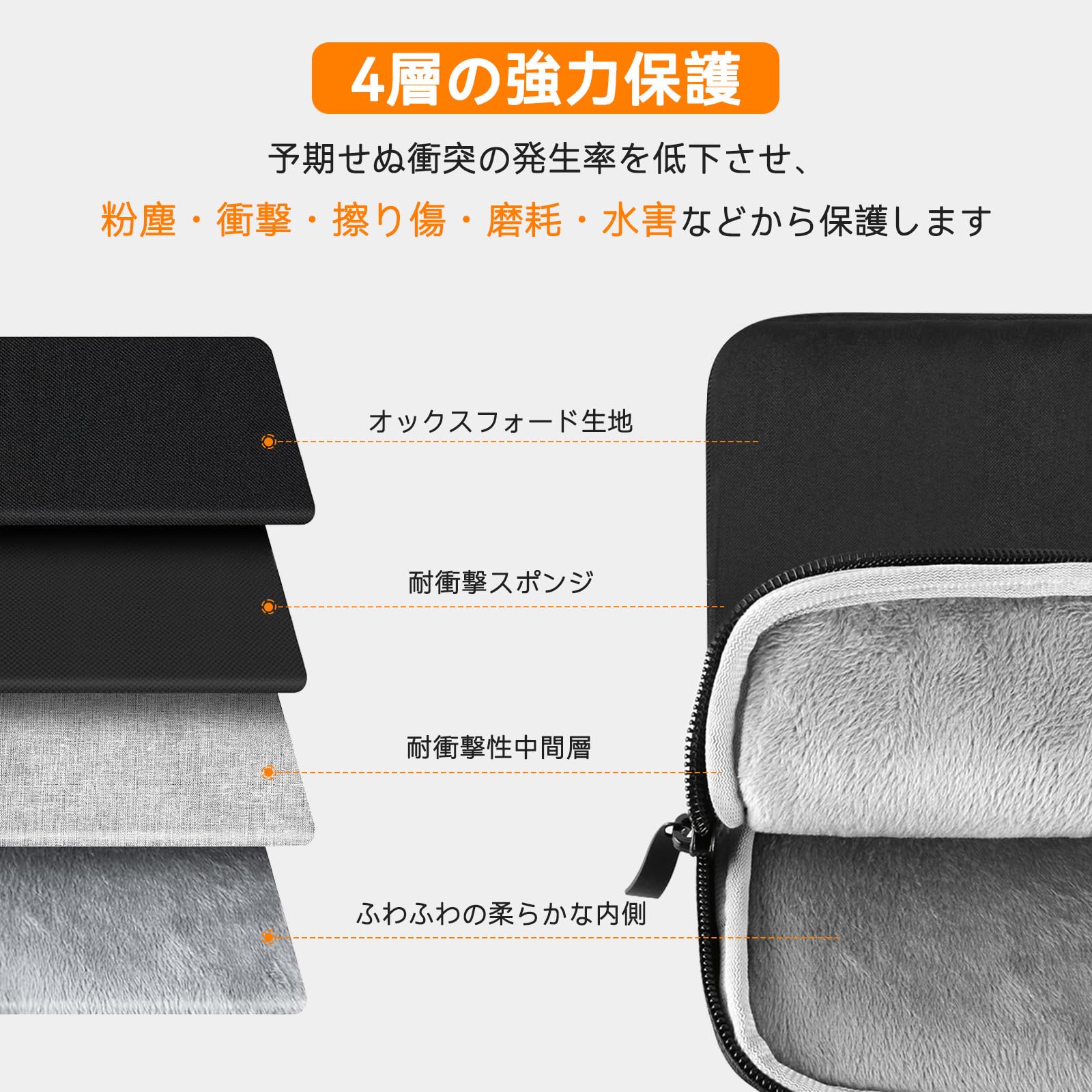 ■ 【衝撃保護&防水】 ノートパソコン ケース高密度クッション材とシルキーな内張りで落下・摩擦から機器を保護。