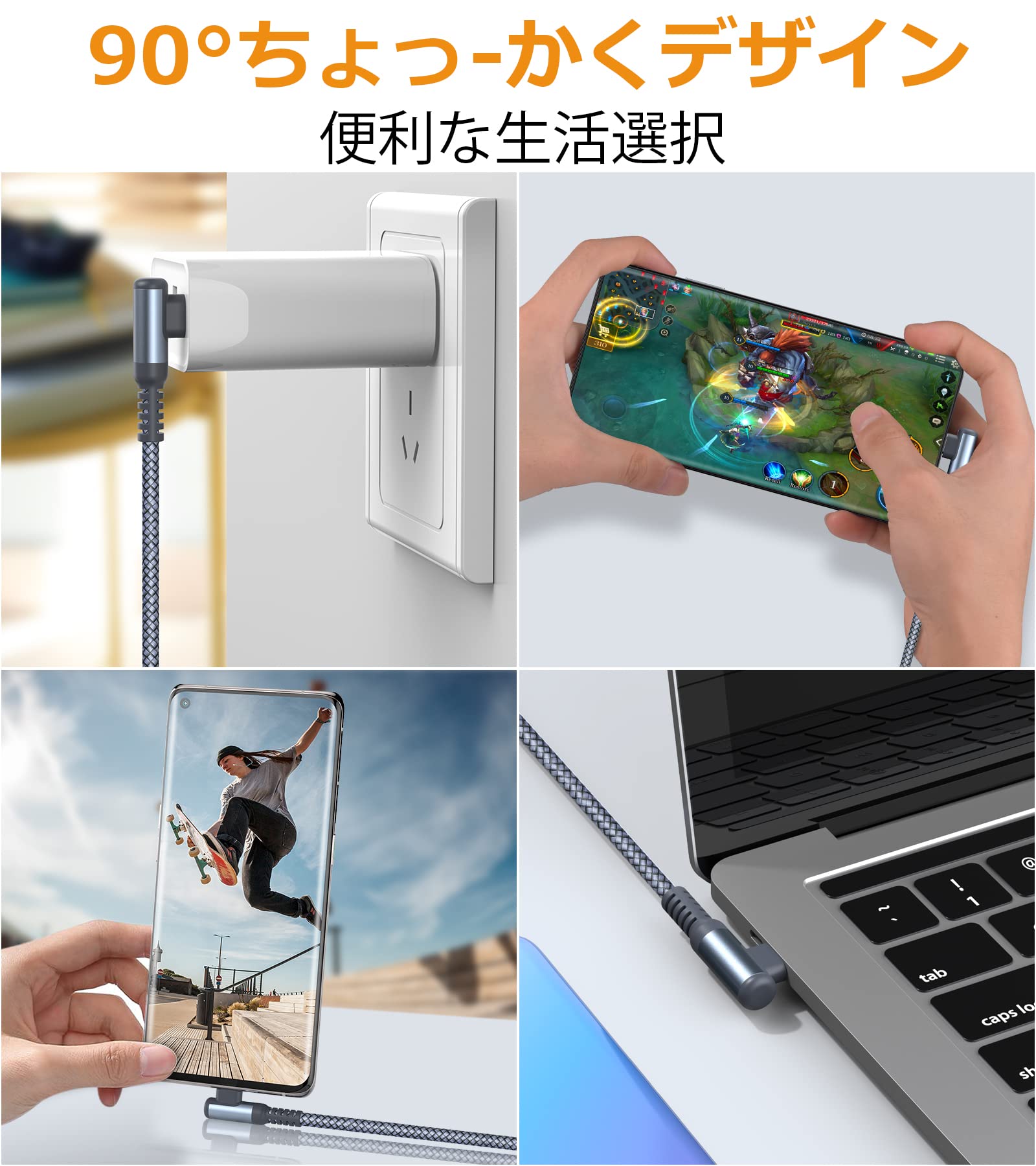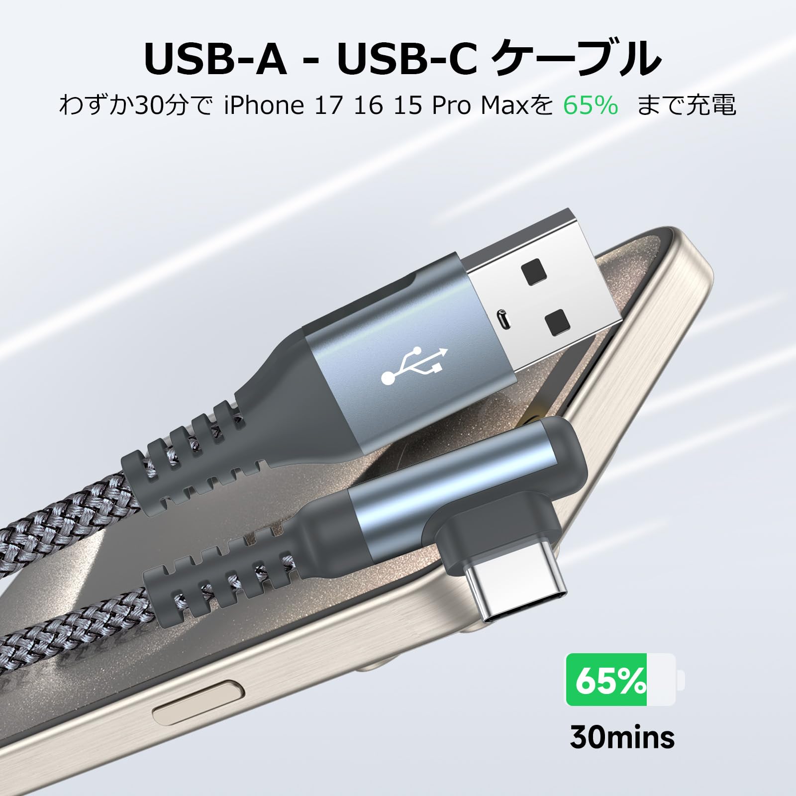 USB Type C ケーブル L字【2本セット 2m】Sweguard USB-C to USB-A けーぶる【PD& QC3.0対応 3.1A急速充電】タイプc 充電ケーブル iPhone 17 16 15 Pro Max,アイホン15 16 17,Samsung Galaxy S24 S23 S22 S10 S25,Sony,Huawei,Pixel、usb c機器と互換性があり(灰)