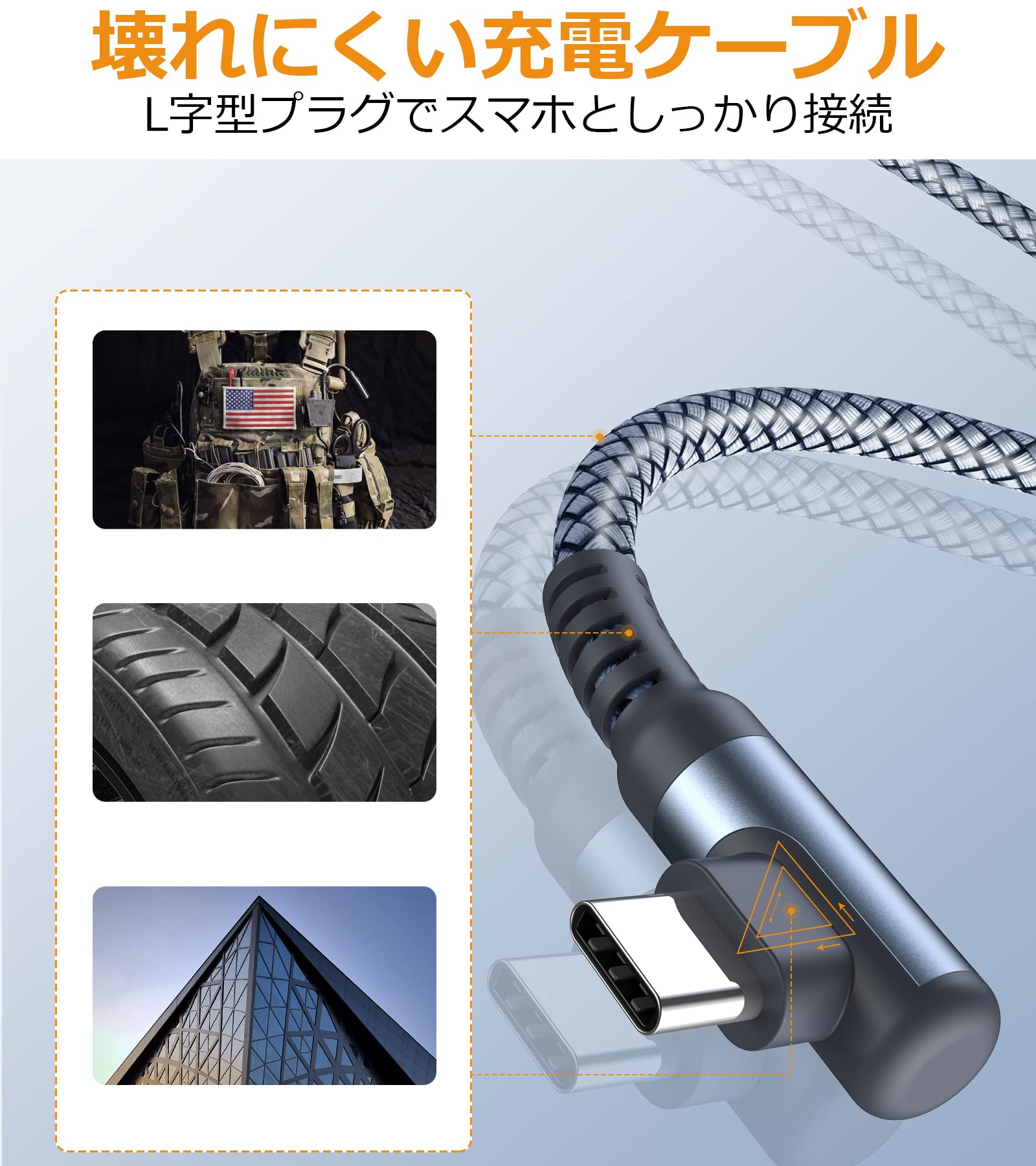 ■ 【耐久性】ナイロンファイバー被覆構造で15000回以上の曲げ試験に合格し、一般的なUSBケーブルより寿命を4倍以上に向上する高耐久Type C ケーブル 充電ケーブルです。