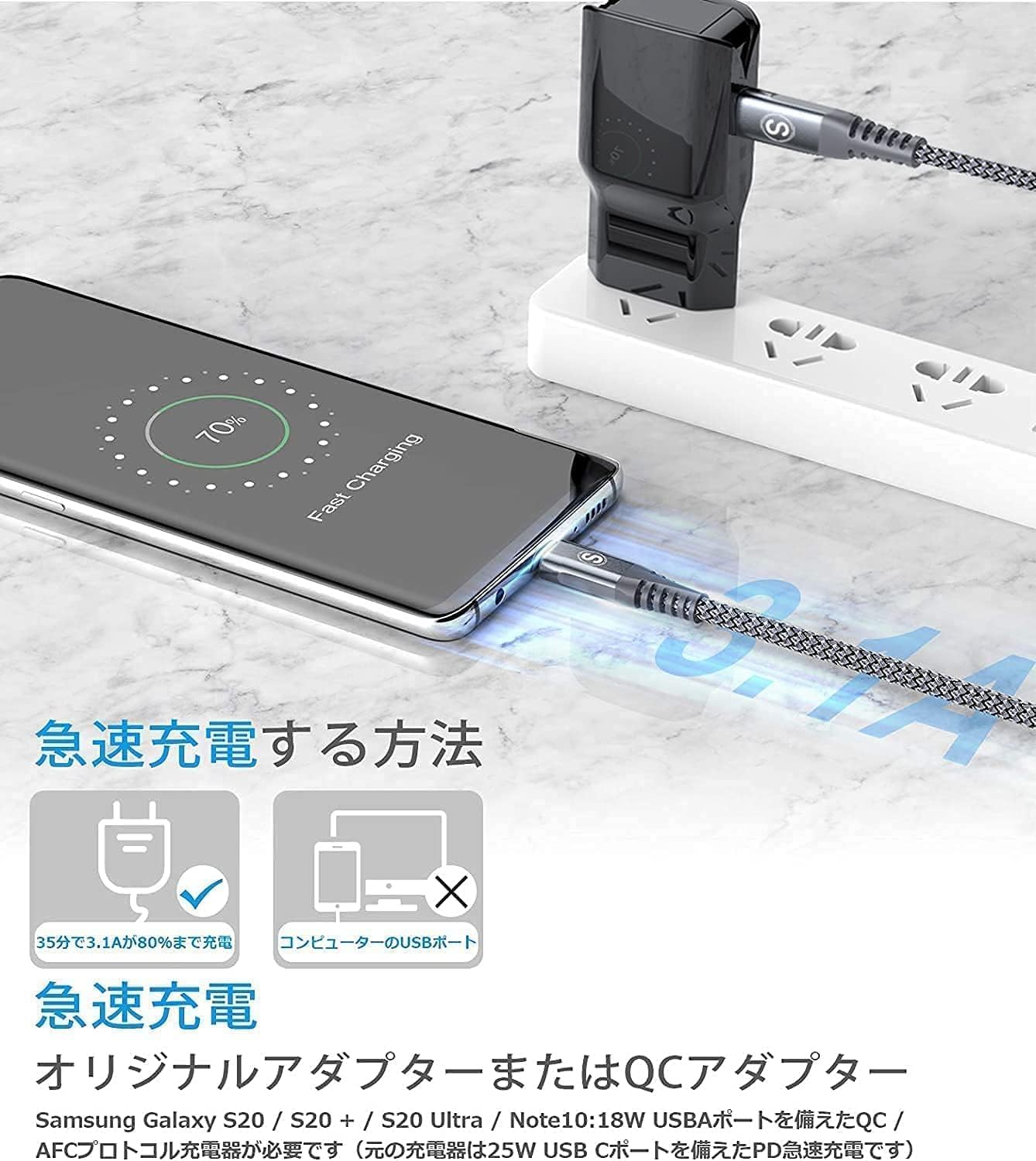 ■ 【対応機種】:Sweguard Type C-Type C ケーブルはiPhone 17 Pro Max/iPhone 16 Plus Pro MAX/iPhone 15 Plus Pro MAX/MacBook、Dell XPS 13/15、HP Spectre X360、Galaxy S25/S24/S23/S22/S21/S20/ S10/ S9/ S9 Plus/ S8/ Note 8、Nexus 5X/6P、ChromeBook Pixel 2015、HTC U11/ 10 およびUSB Type-Cポートを備えたその他すべての携帯電話とタブレットと互換性があります。