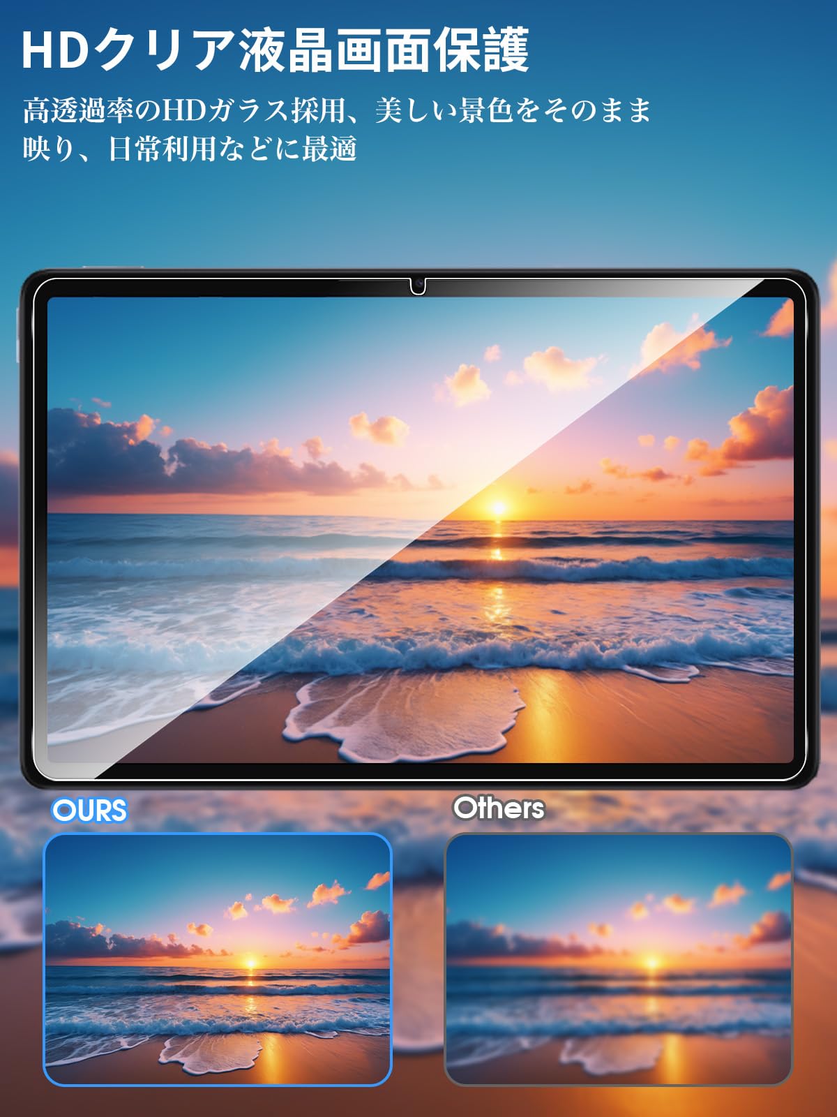 ■ 【透明感良し】このタブレット保護フィルムは99.99%の透過率で液晶スクリーンの画面をそのまま映ることができますので、動画を観たりゲームをしたり、日常利用中で高解像度を損ねず存分に楽しめます。