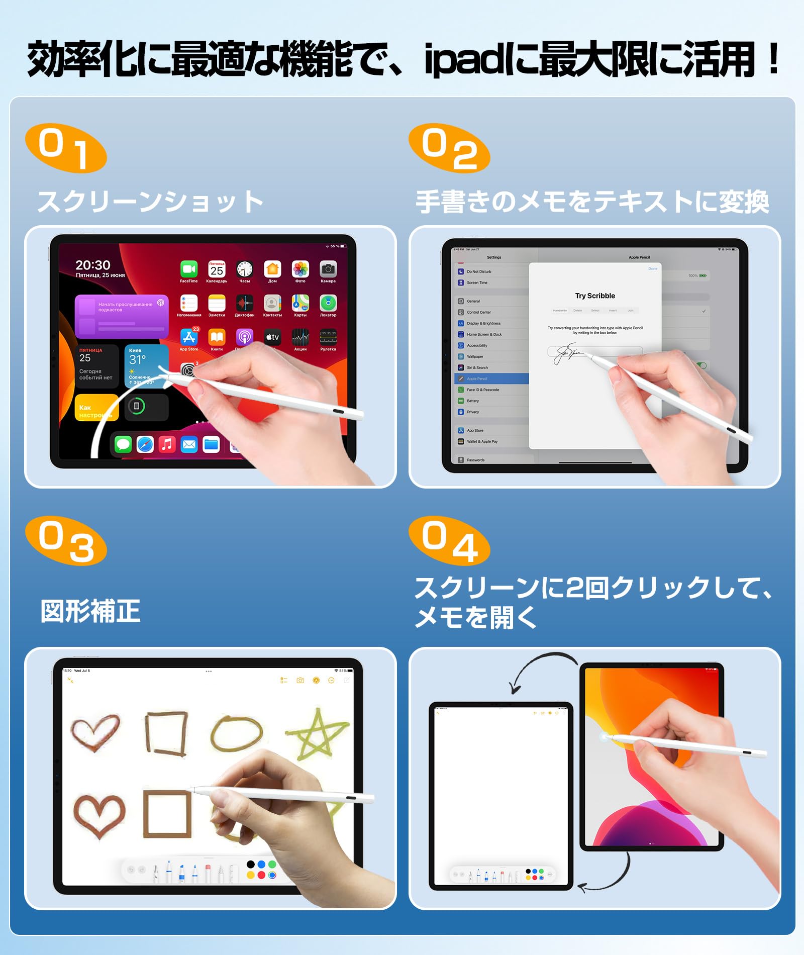 付属のApple純正互換POM替え芯(2本同梱)により、遅延・途切れのない「紙に書くようなナチュラルな書き味」を実現!ロック画面からのメモ即起動や図形自動補正など、Apple Pencilの全機能を完全サポート。