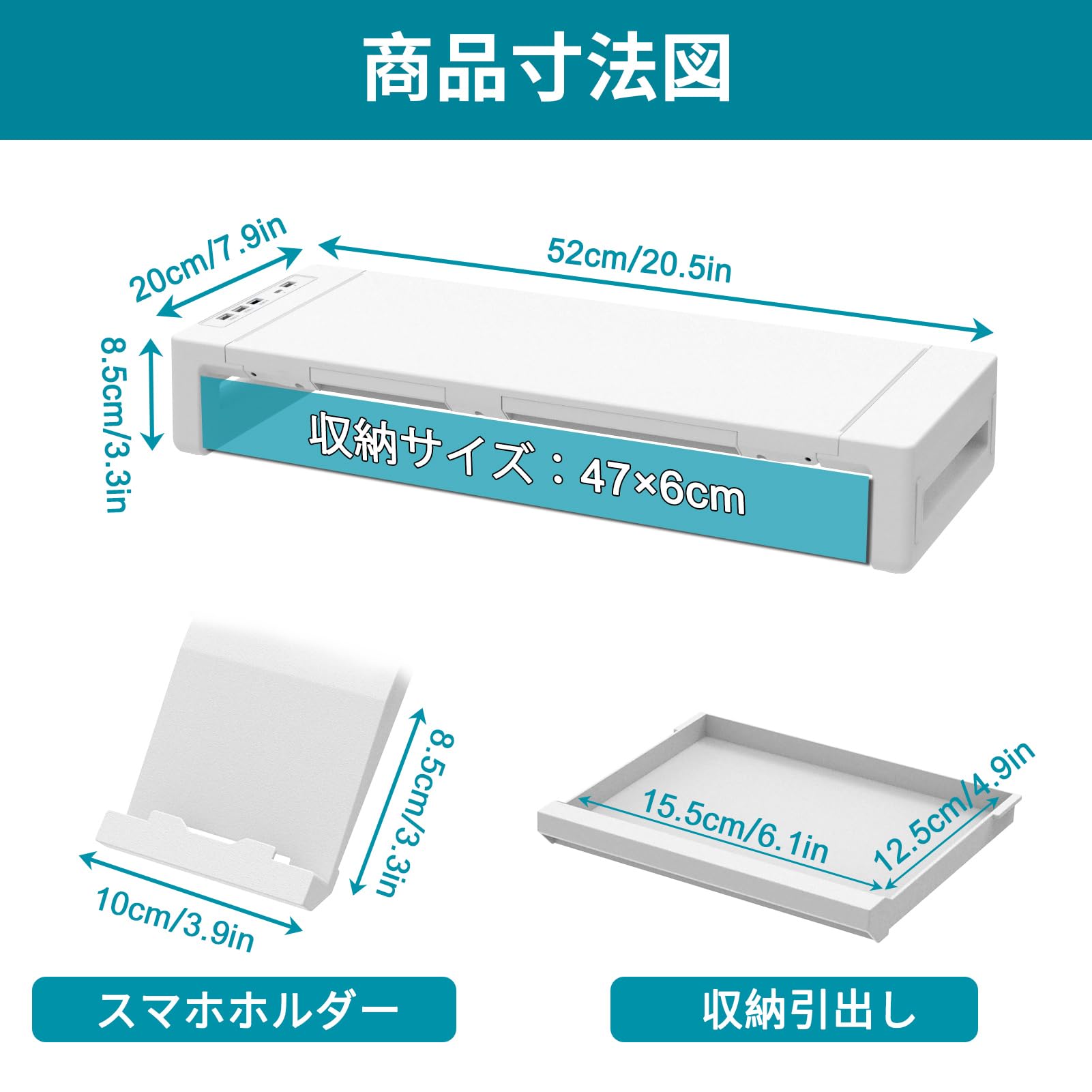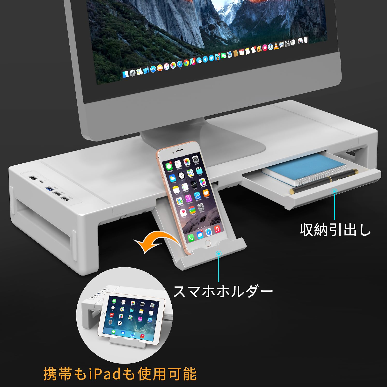 EAYHMモニター 台 卓上 USBドッキング付き PC 机上 台 USB/TYPE-C急速充電対応 折りたたみ可能 パソコンスタンド 引き出しとスマホホルダー付き パソコン 台 幅3段階可変モニタースタンド 耐荷重25Kg (白-USBドッキング付き)