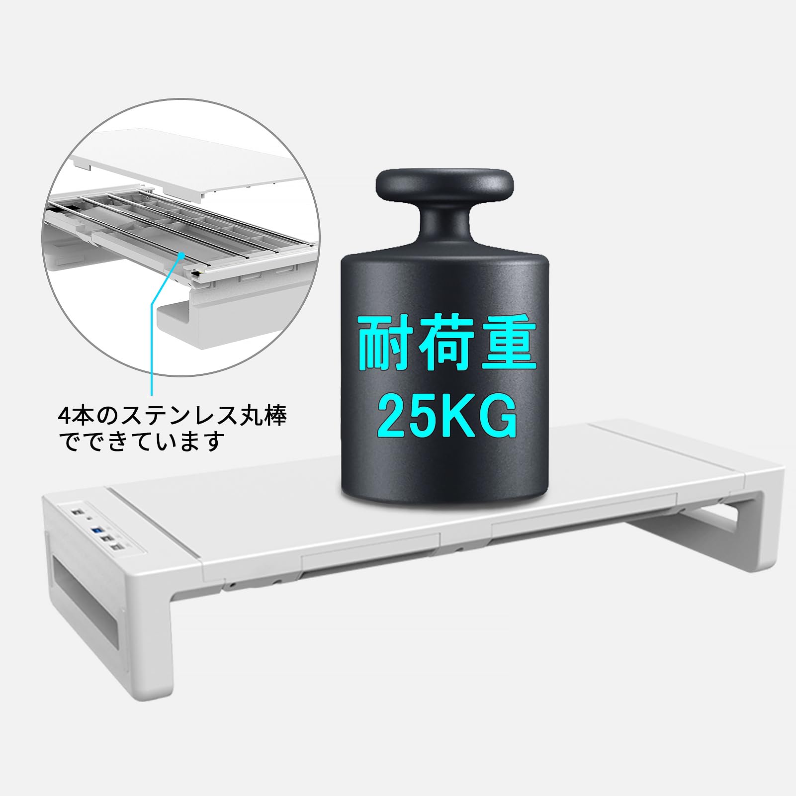 ■ 高品質のPC台およびコンピュータースクリーンシェルフオーガナイザー:ABS+ステンレス丸パイプ4本で耐荷重25kg(約55ポンド)を実現。