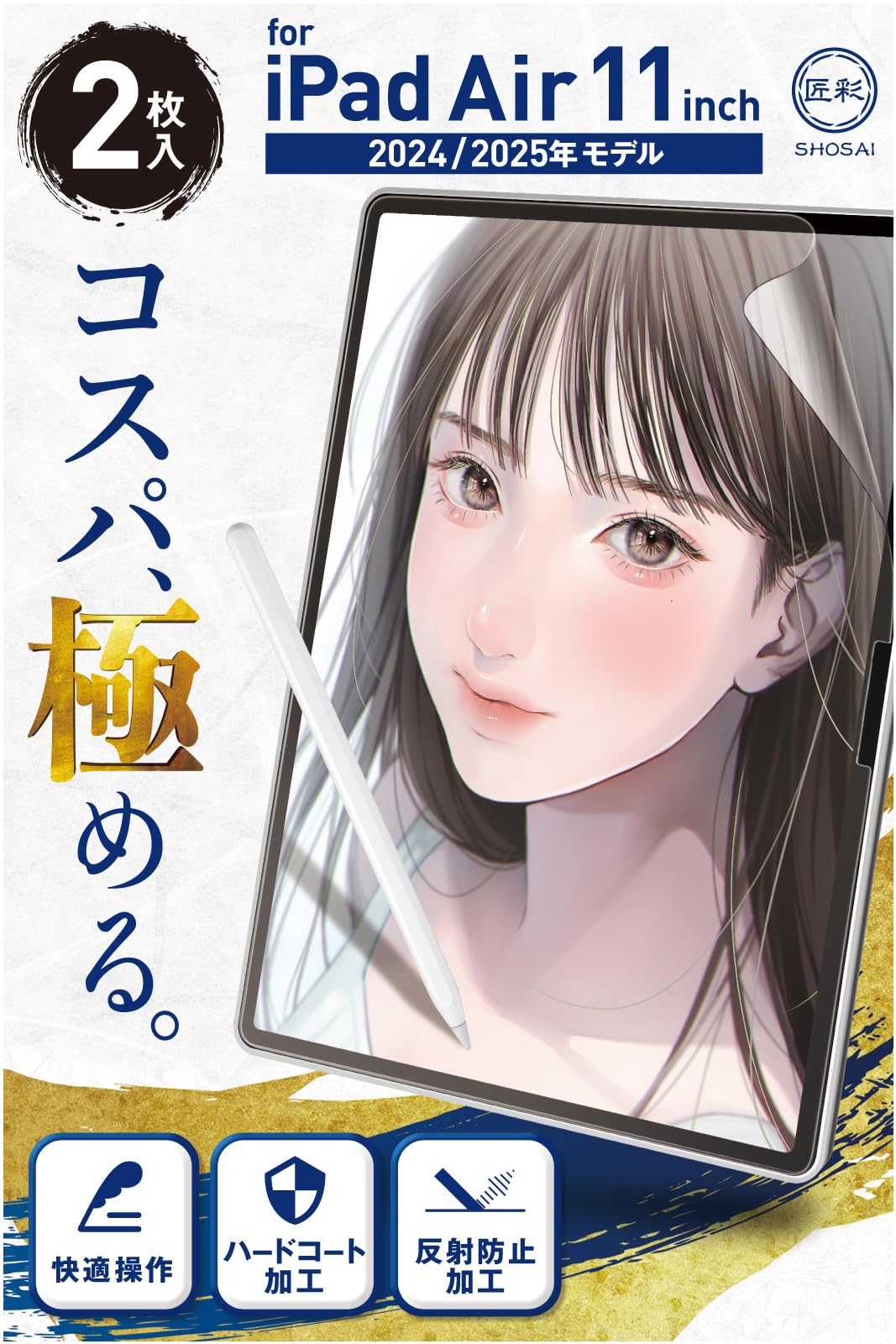 匠彩【プロ漫画家推薦2枚入】 iPad Air 11 インチ 用 2025/2024モデル ペーパーライクフィルム M3/M2 フィルム ケント紙タイプ