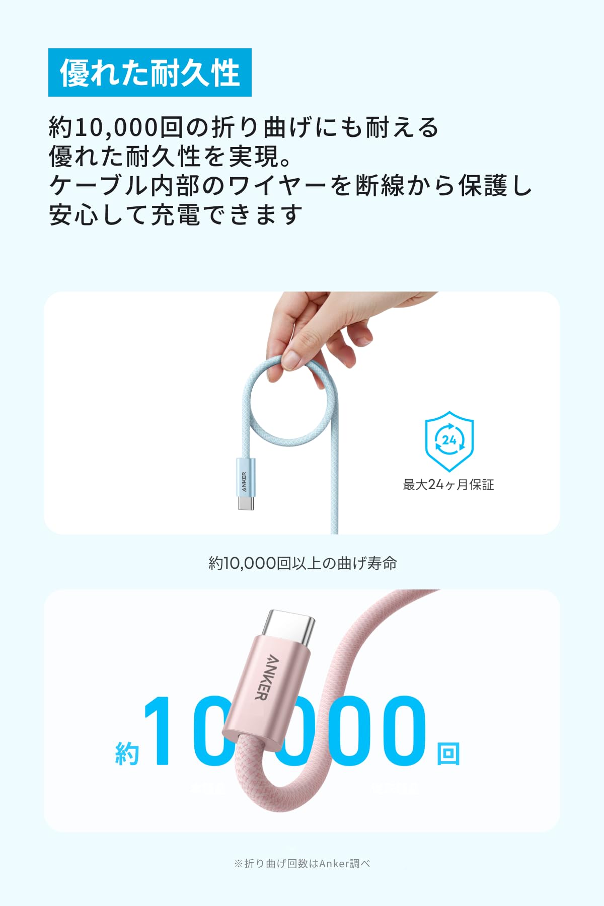 ケーブル内部のワイヤーを断線から保護し安心して充電できます。