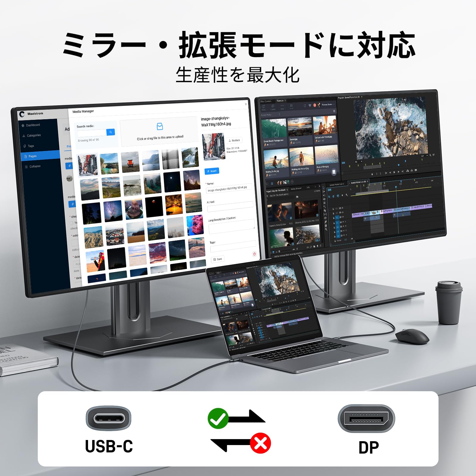 ■ 幅広い互換性 - USB-C 3.1およびThunderbolt 3/4ポートインターフェースで「ビデオ出力(DP Alt Mode)」をサポートしています。