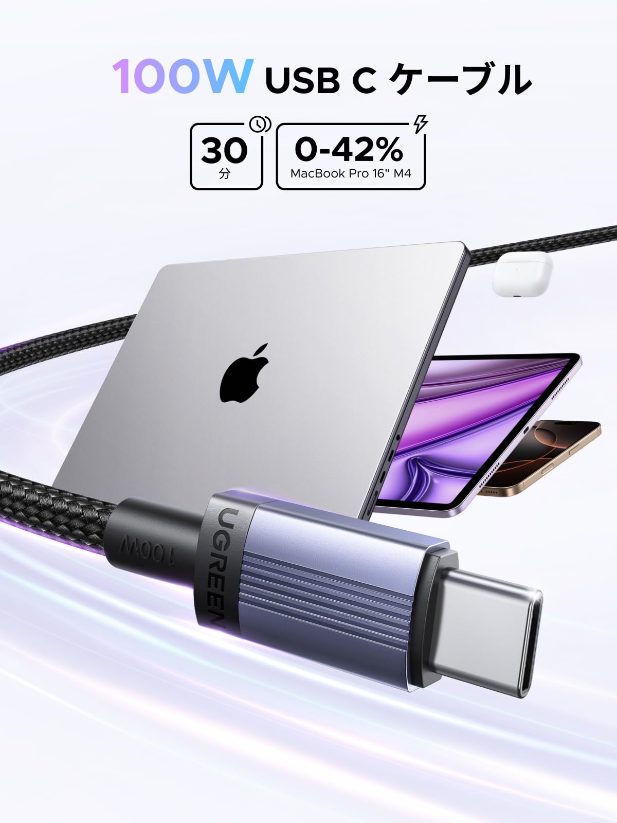 ■ 【100W/5A】タイプcケーブルの中でも100W/5A怖い出力パワー。