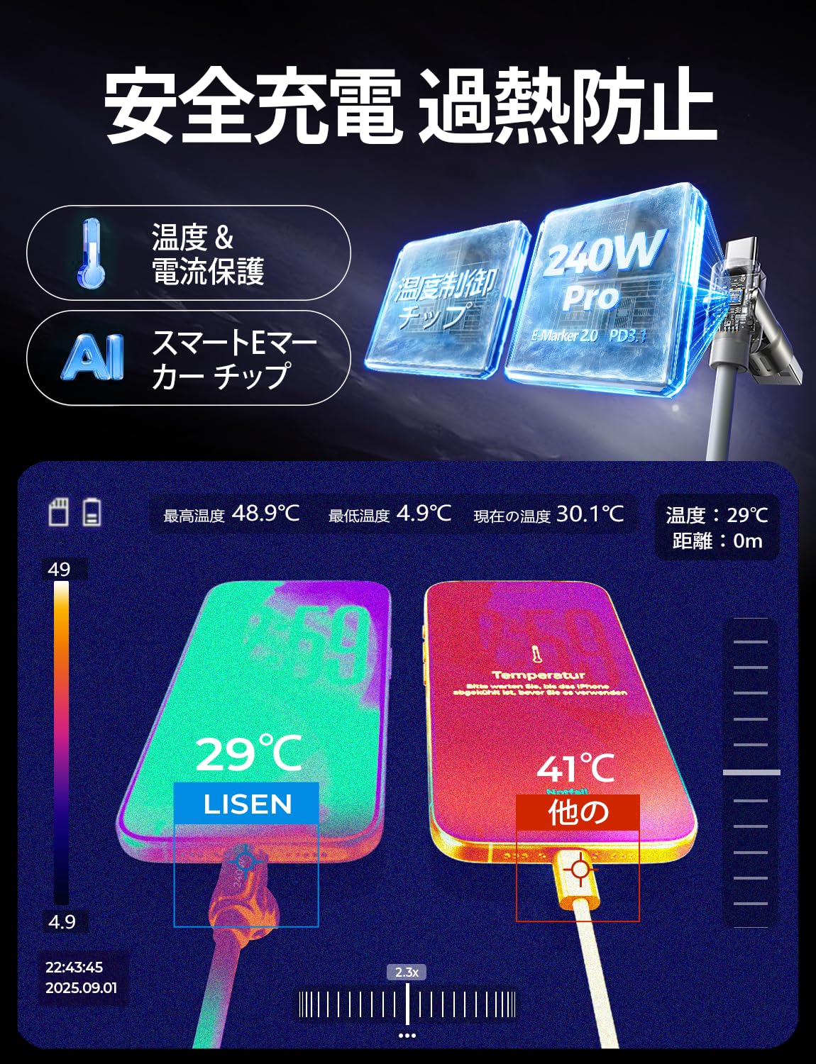 ■ 【最大240W高速充電とデータ転送】:らいとにんくけーぶる タイプc を搭載した超高速USBC ケーブルをご体験ください。