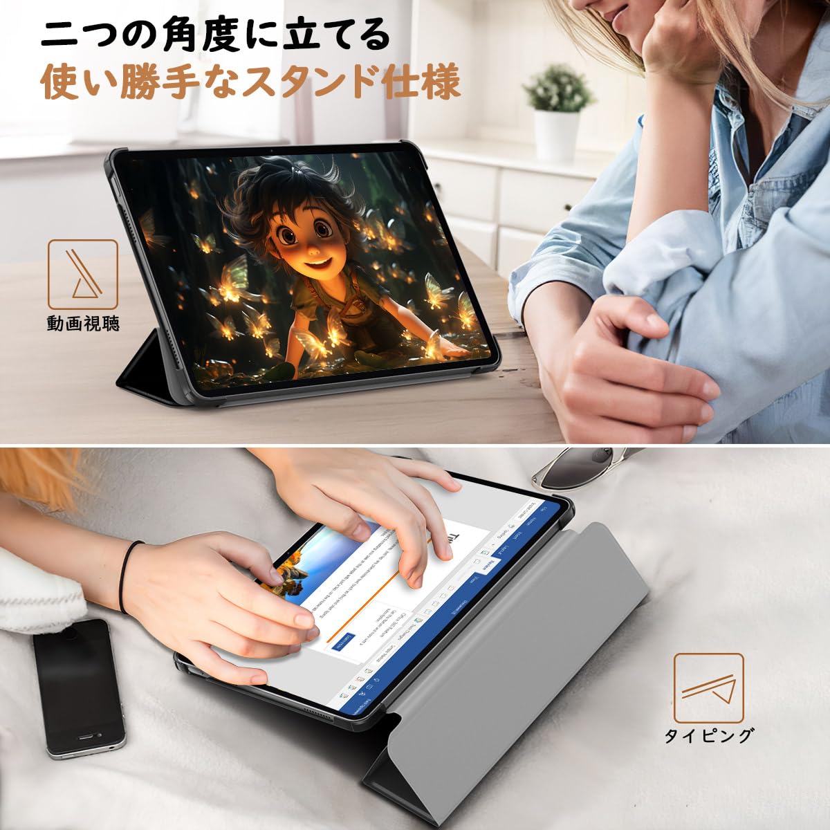 ■ 「便利なスタンド仕様」 蓋の部分には折り目が2ヶ所設けられており、折り曲がると手軽にスタンドに立てかける仕様より、タイピングや動画視聴などの2つの角度をご必要に応じてに使い分けられて、両手解放で動画鑑賞を楽々に楽しめ、仕事やゲームなどにもより快適に進められます。