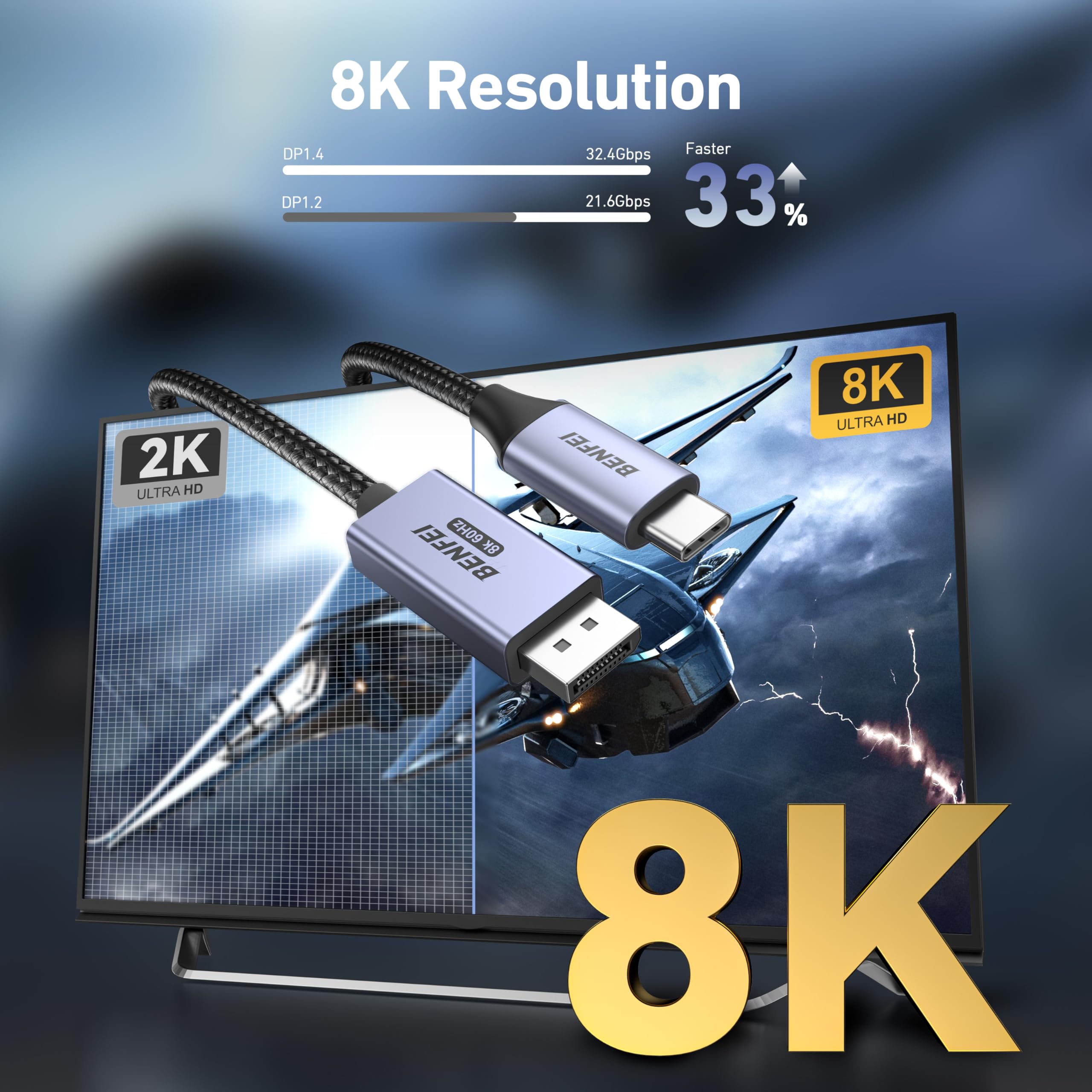 ■ 【双方向8Kビデオソリューション】:BENFEIのケーブルは、USB Type-CソースからDisplayPortモニターへの双方向ビデオ/オーディオ転送、およびDisplayPortからUSB Type-Cモニターへの双方向ビデオ/オーディオ転送をサポートし、最大8K@60Hz、2K@240Hzの解像度をサポートし、驚くほど鮮明な映像とスムーズなパフォーマンスを実現します。