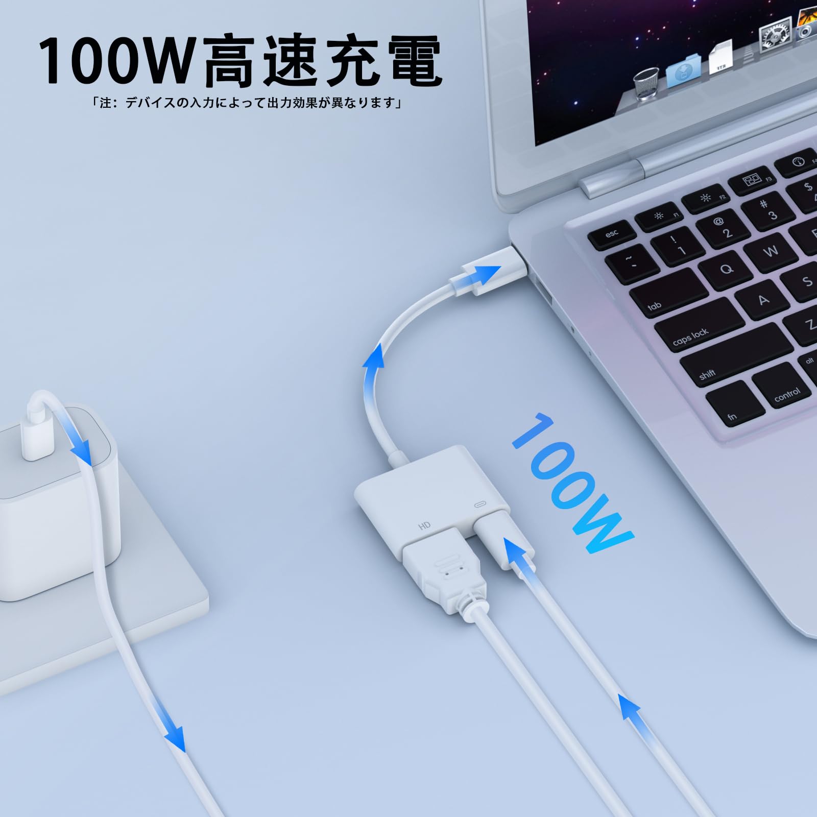 ■ 【2in1 Typec HDMIアダプター、4K高画質と100W急速充電】スマホの画面を大画面に映し出し、さらに充電も同時に!Type C Digital AVアダプターは、優れたICチップを搭載しており、安定したデータ転送を実現。