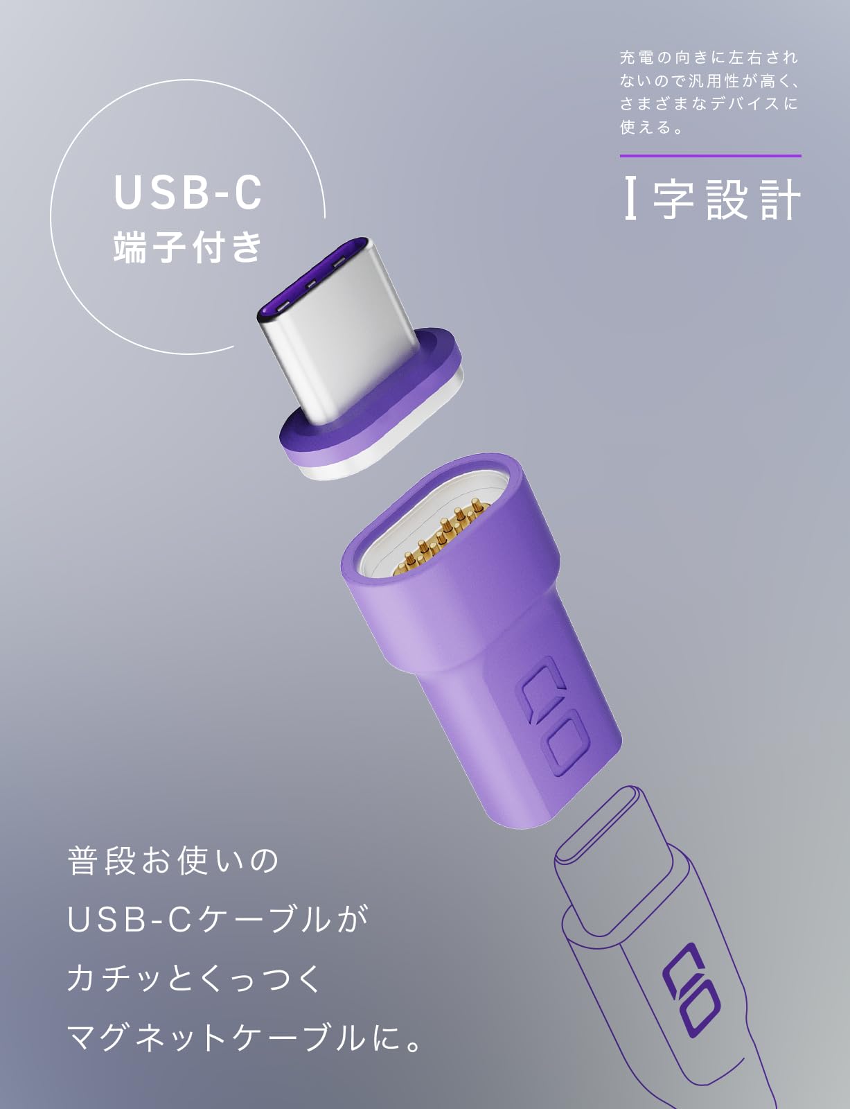 CIO マグネット変換アダプタ USB-C(メス) to USB-C(オス) ストレート タイプc ケーブル 磁石で脱着可能に 100W USB2.0 データ転送 480Mbps(映像出力非対応) (パープル)