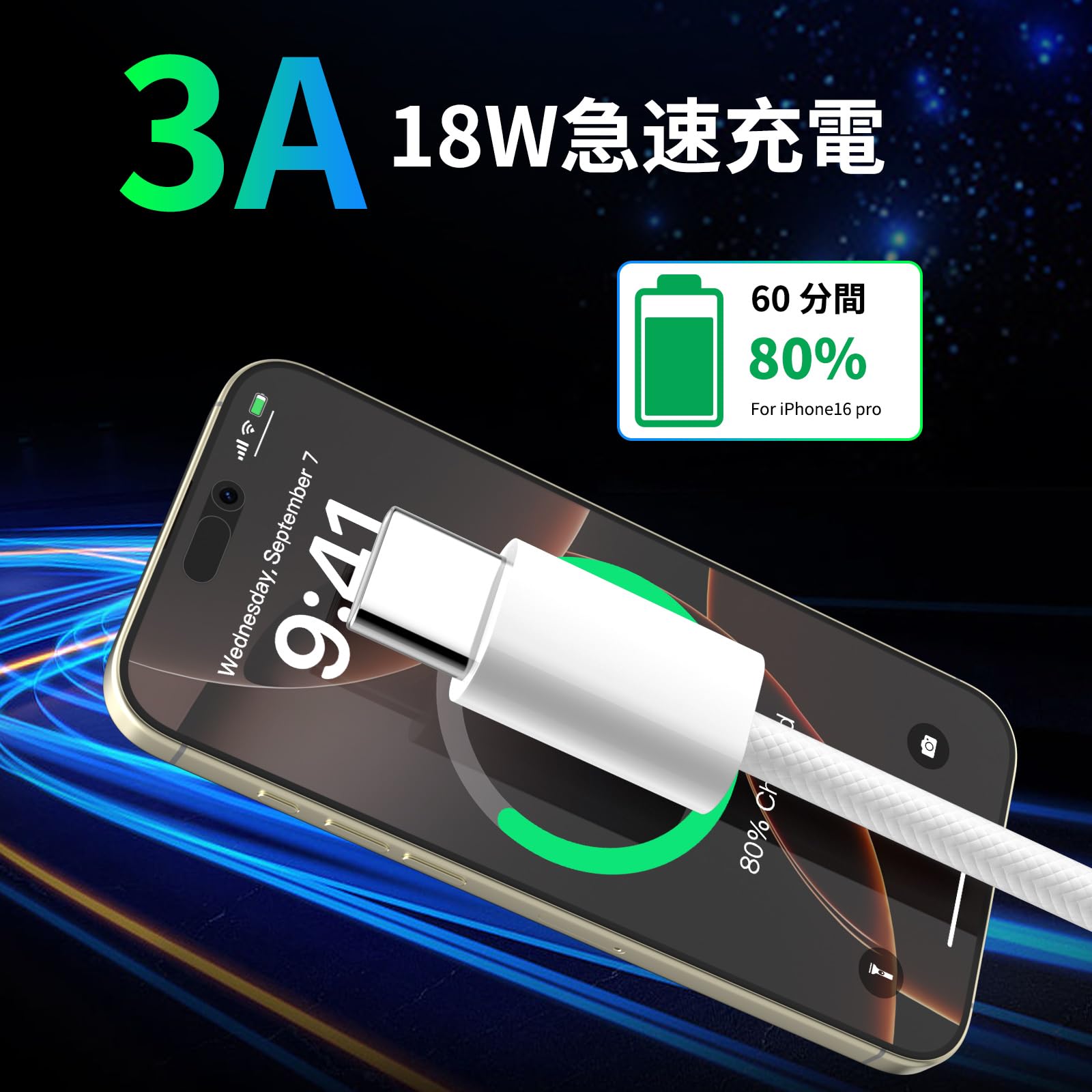 当社の対応iPhone 充電ケーブルタイプcを使用すると、わずか35分でiPhone 15シリーズを70%充電できます