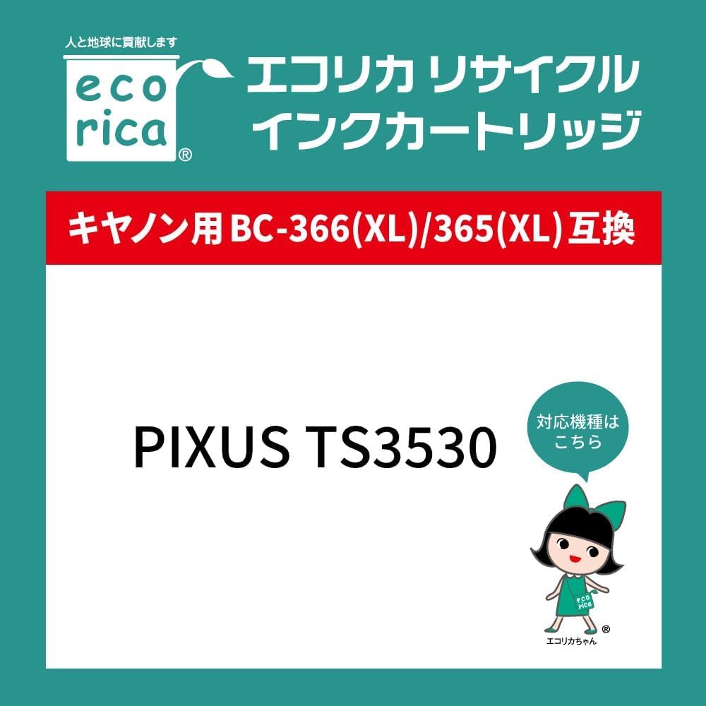 エコリカ キヤノン BC-365対応リサイクルインク 通常容量 ブラック/顔料 TS3530BK TS3530WH TS3730BK TS3730WH 残量表示対応 封筒パッケージ