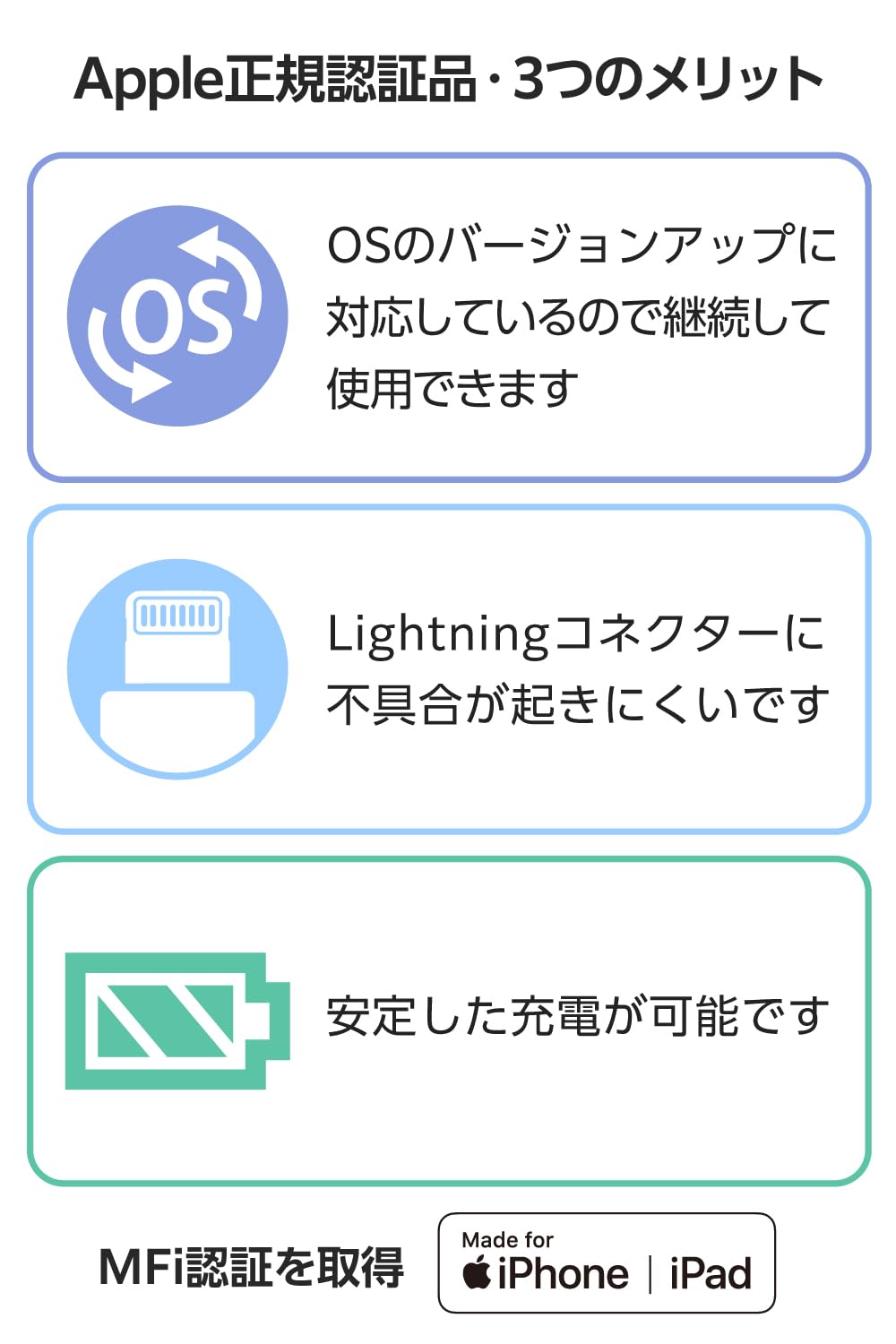 ■ Lightningポート搭載のiPhone・iPad・iPod・AirPodsの充電やデータ転送に。