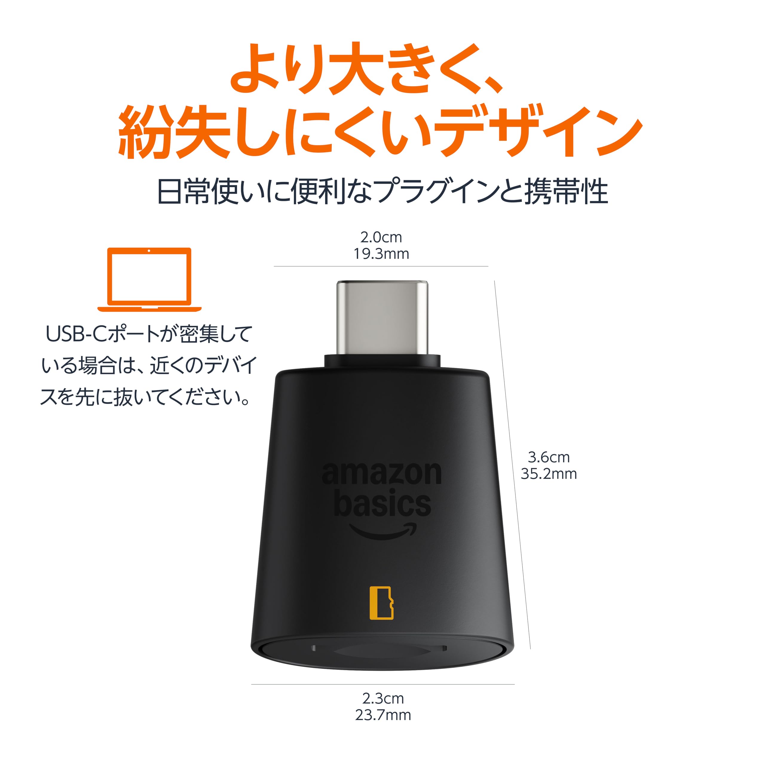 ■ USB C 3.0オスプラグ付きのコンパクトなマイクロSDカードリーダー。