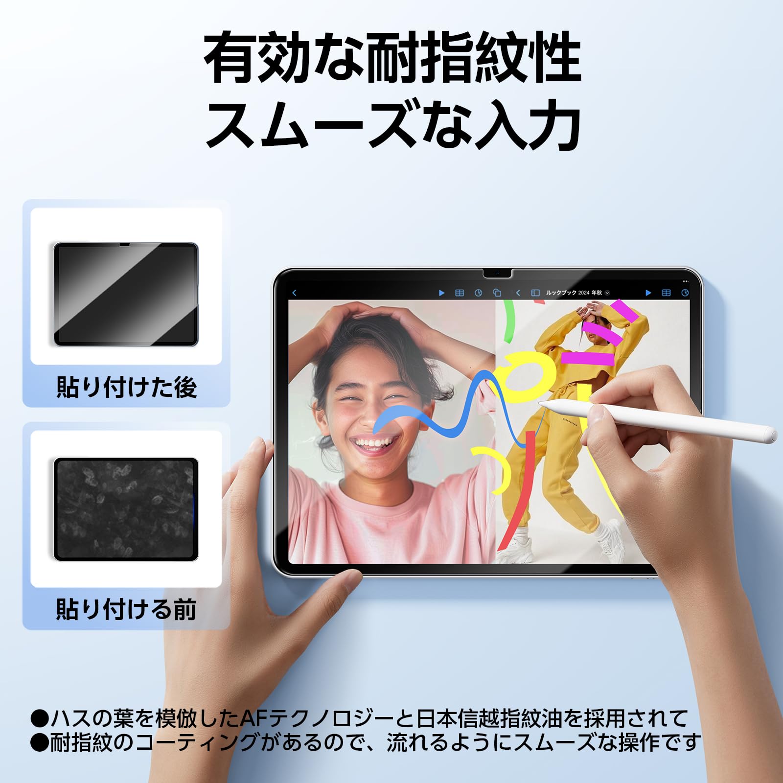 ■ 【究極のスムーズな感触・指紋防止】ハスの葉を模倣したAFテクノロジーを搭載され、撥水撥油、耐指紋性を持つ防汚ナノコーティングが形成され、指紋を気にすることなく日常的に使用し、画面を綺麗に保つできます。
