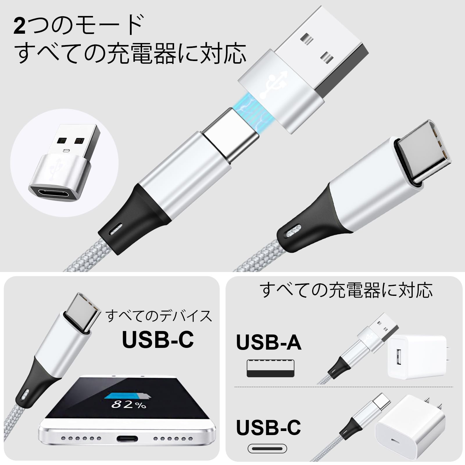 ■ 【幅広い交換性】USB A/Type C to Type C 4in2設計万能ケーブル、一本4役です。