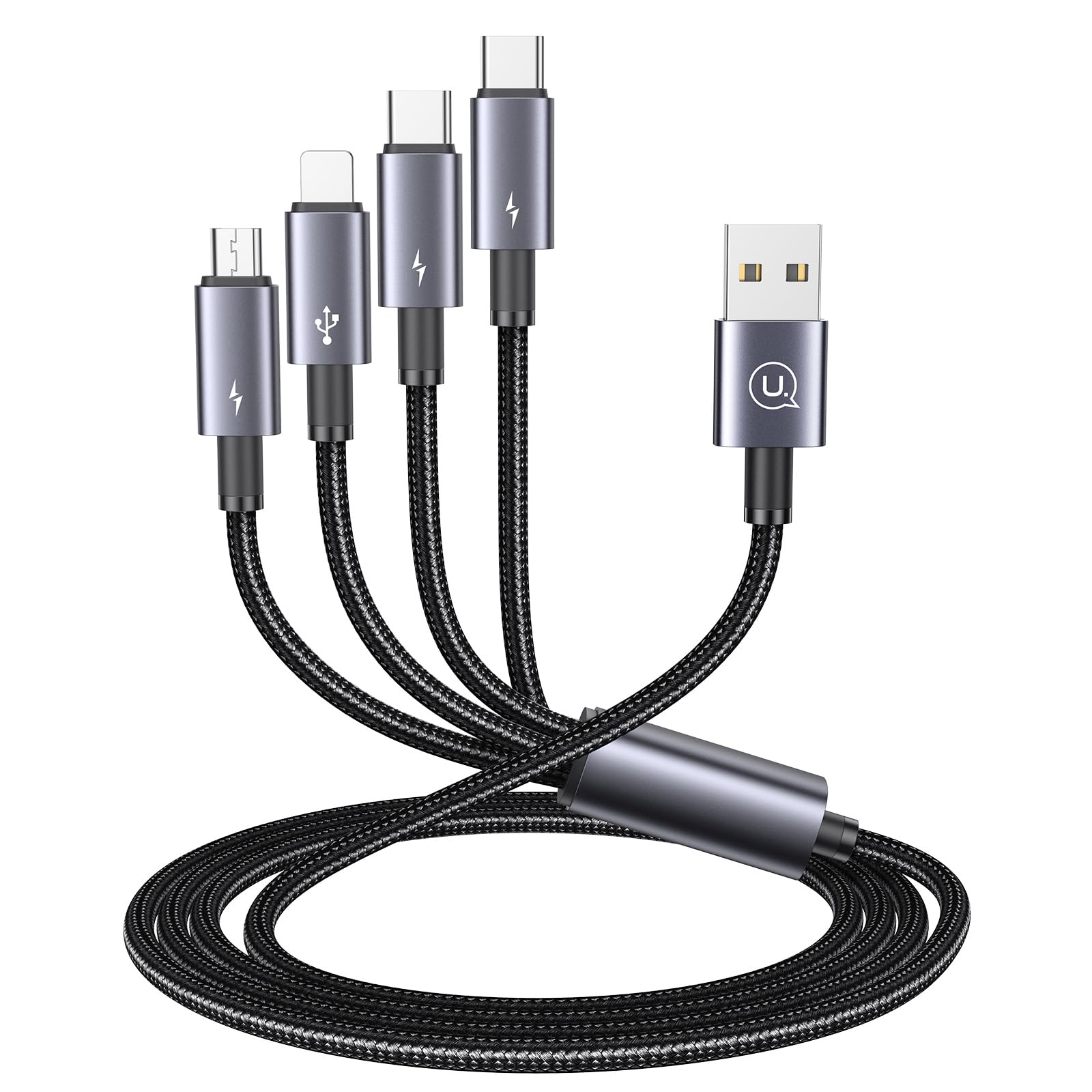 4 in 1 充電ケーブル 急速充電 USB Type-C/USB Type-C/IP/Micro 1本4役 4台同時充電 USB充電ケーブル 高速データ転送 高耐久ナイロン編み タイプC ケーブル タイプC ケーブル 多機種対応 1.2M ブラック