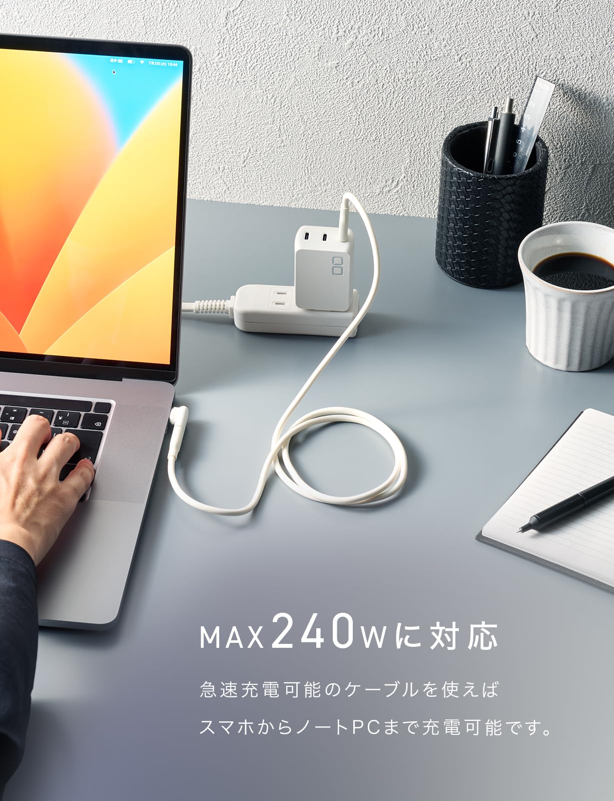 ※仕様として最大240Wの出力に対応しておりますが、接続するケーブルの対応出力に準じた出力が上限となります。