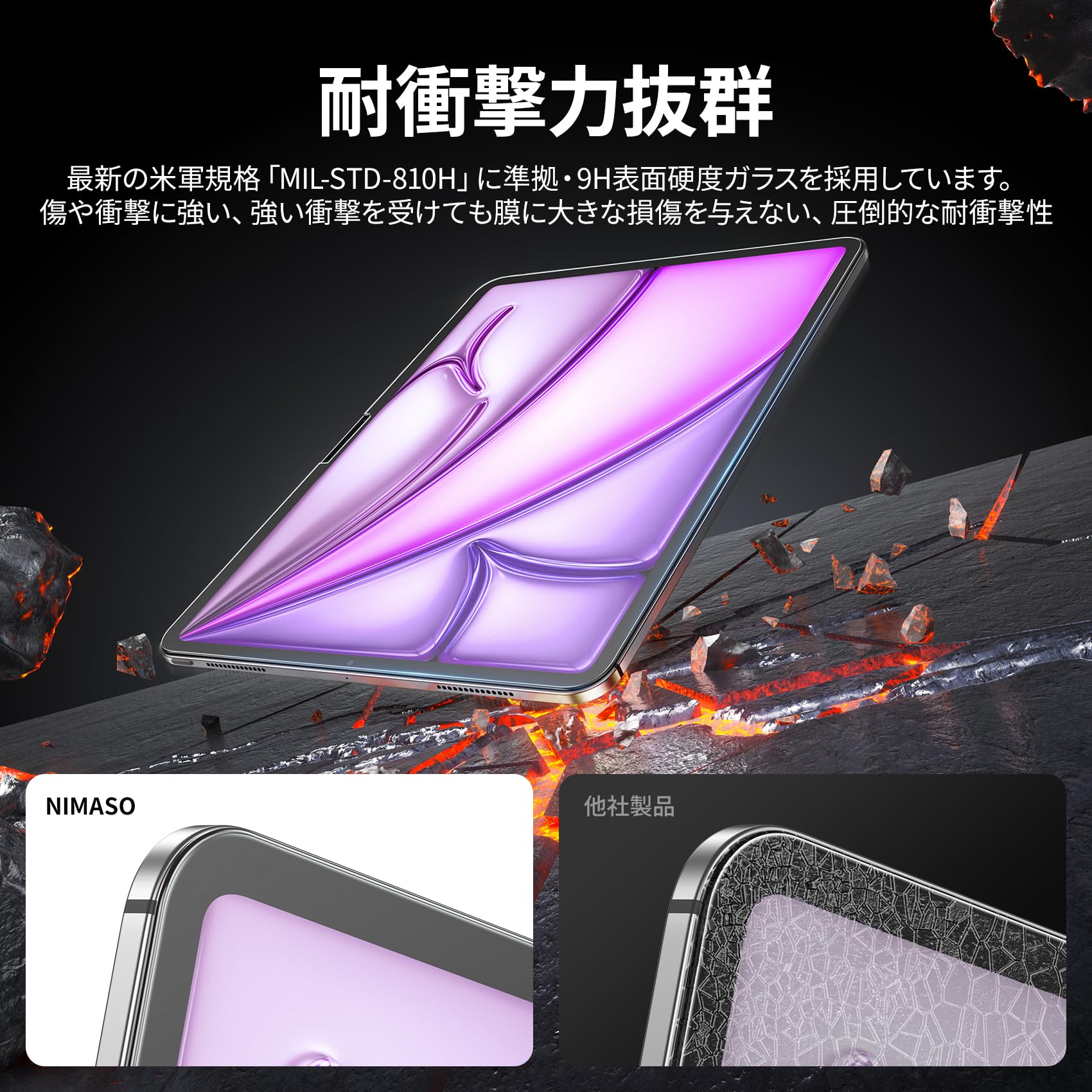 ■ 高品質日本製素材 : 9H硬度を持つガラスにハードコーティングが施されることにより、外部からの衝撃をフィルムが吸収し、画面へのダメージを最低限まで抑えました。