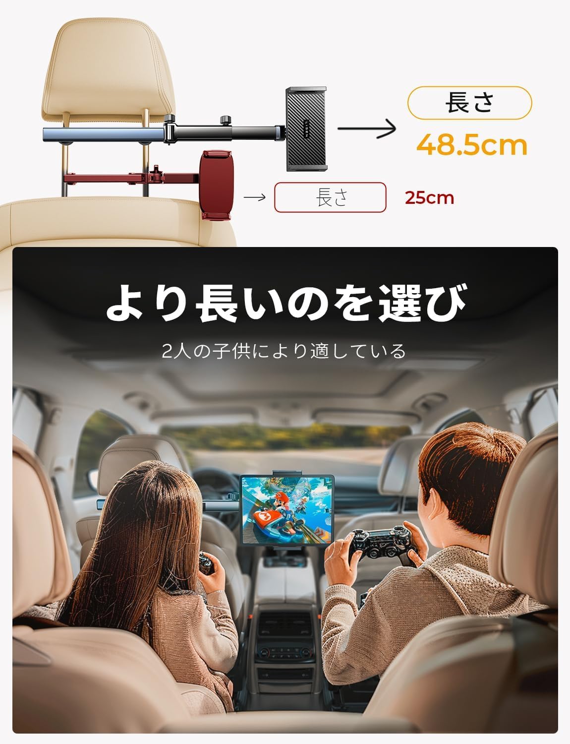 【2025新型・中央2人専用】LISEN 車 タブレットホルダー 後部座席 伸縮アーム ヘッドレスト ホルダー 滑り防止 車載ホルダー スタンド 車載用ヘッドレスト タブレット スタンド 車 360°回転可能 カー用品 スイッチ2 iPad Pro/Air/Mini/Galaxy/Fire4.7-11インチタブレットに対応ミルキーウェイ・ブラック
