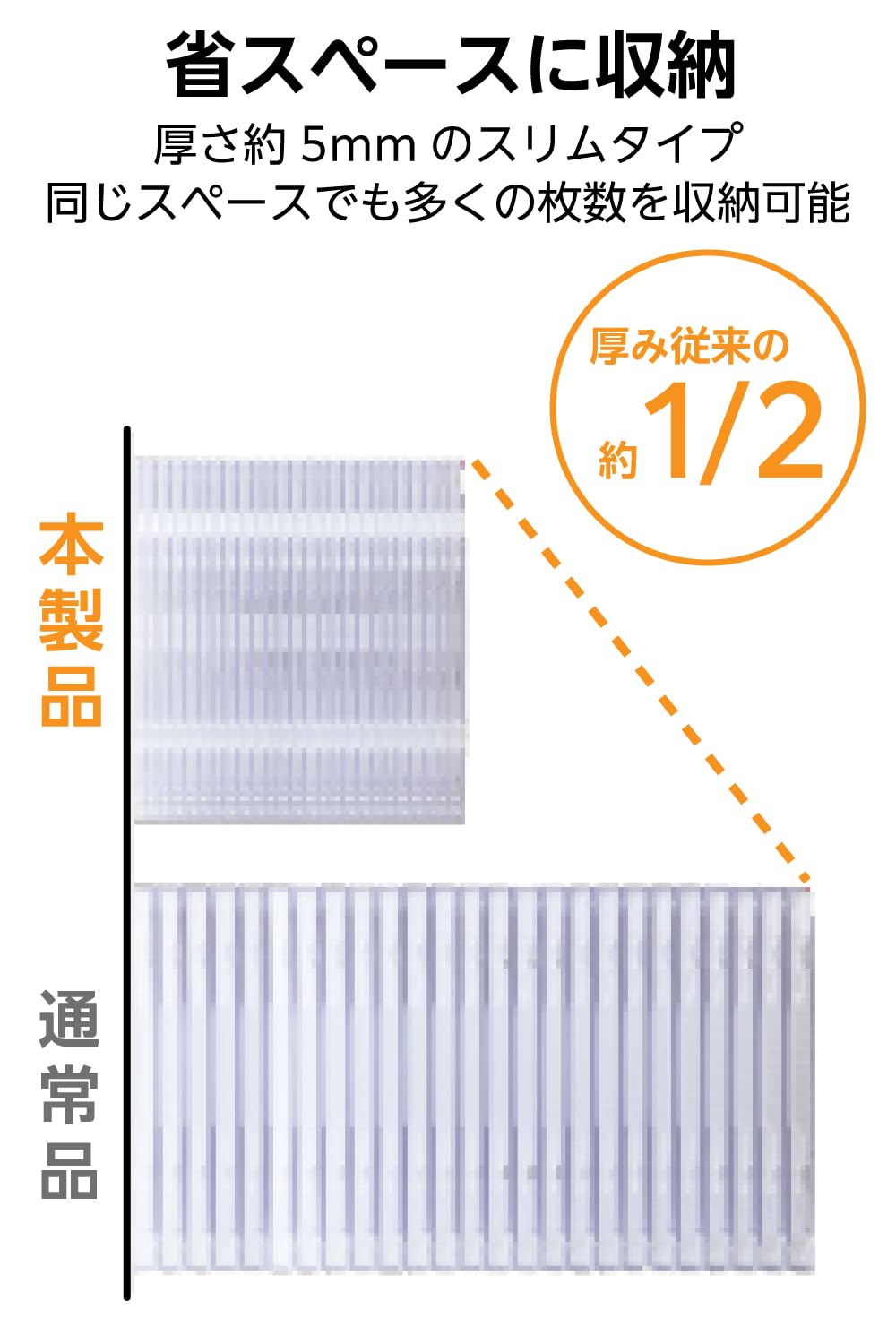 ■ スリムタイプなので、同じスペースでも標準タイプに比べて多くの枚数を収納可能です。