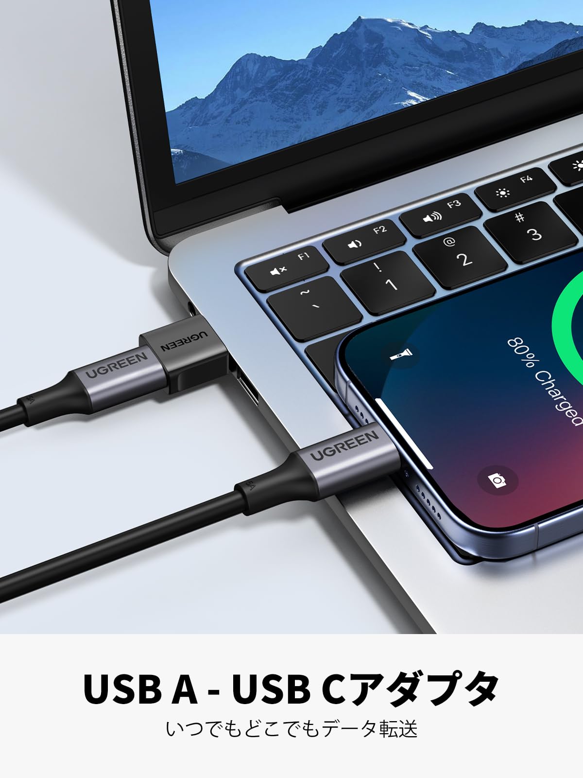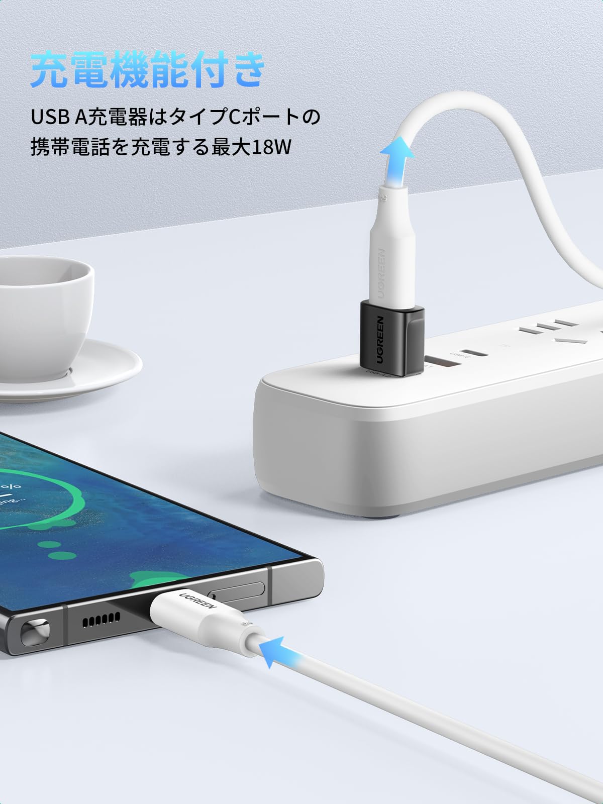 USB Aポート経由で、Type Cインターフェースを備えたスマホ、タブレット、HDD、USBメモリなどその他のUSB機器をPCやACアダプターに簡単に接続できます。