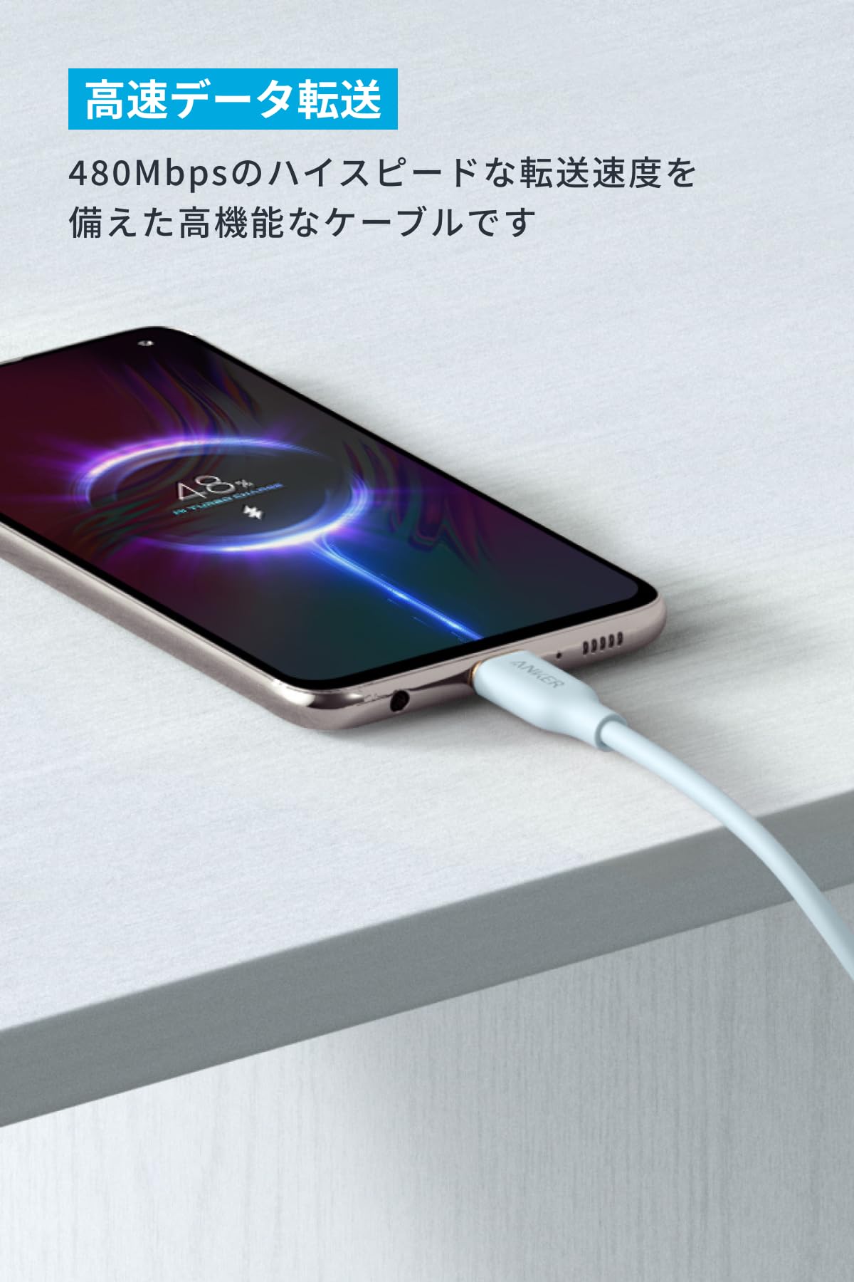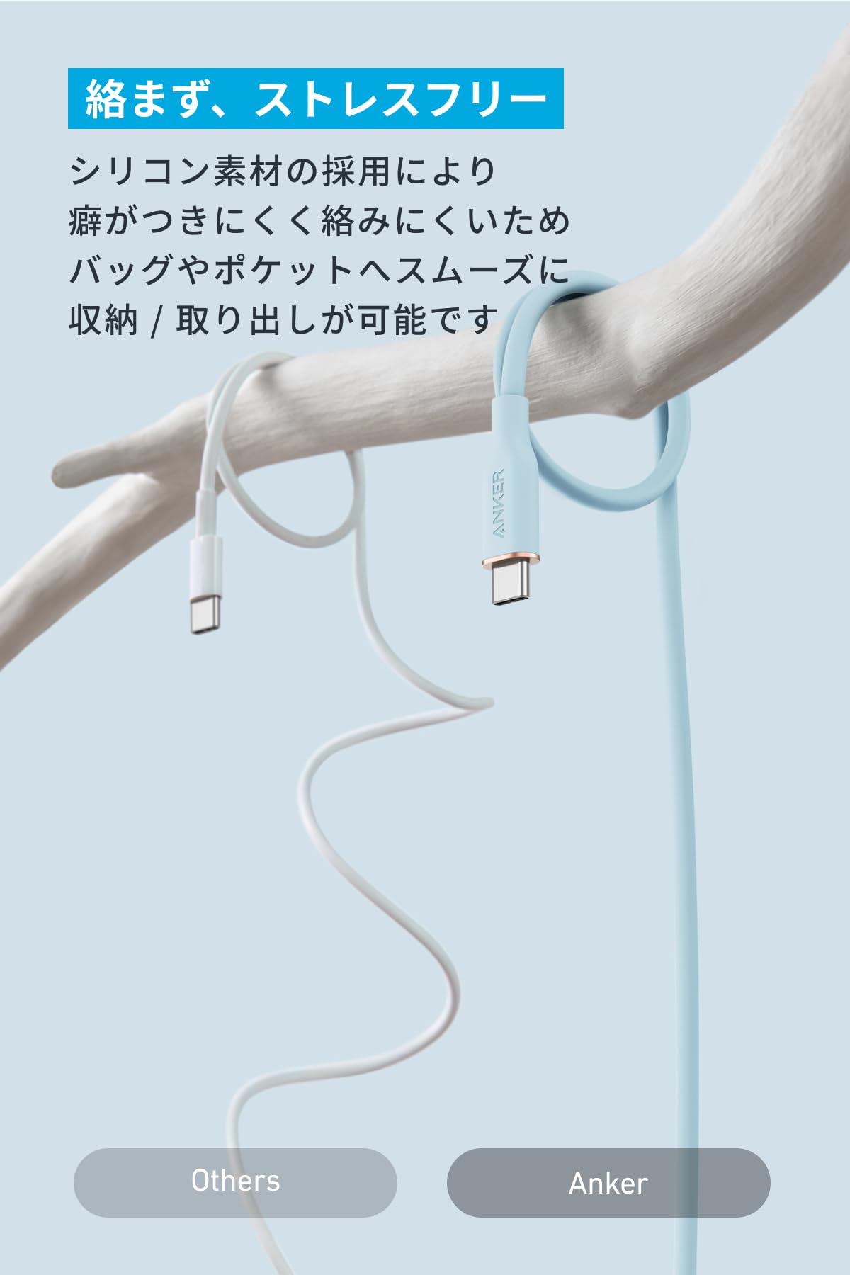 Anker USB-C & USB-A ケーブル (Flow) 絡まないケーブル 15W 結束バンド付き USB-C機器対応 シリコン素材採用 Galaxy iPhone 17 / 16 / 15 各種対応 1.8m アイスブルー