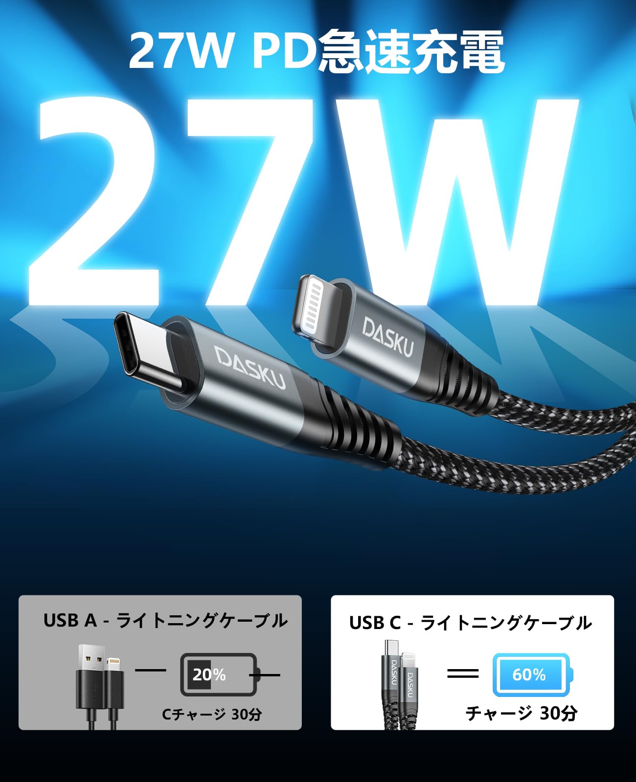 ■ 【MFi認証済みのUSBC ライトニングケーブル】DASKU USBC iPhone 充電ケーブル Apple MFi認証済みに加え、弊社による厳格な品質検査を実施しており、お使いのApple製品を安全にかつフルスピードで充電いただけます。