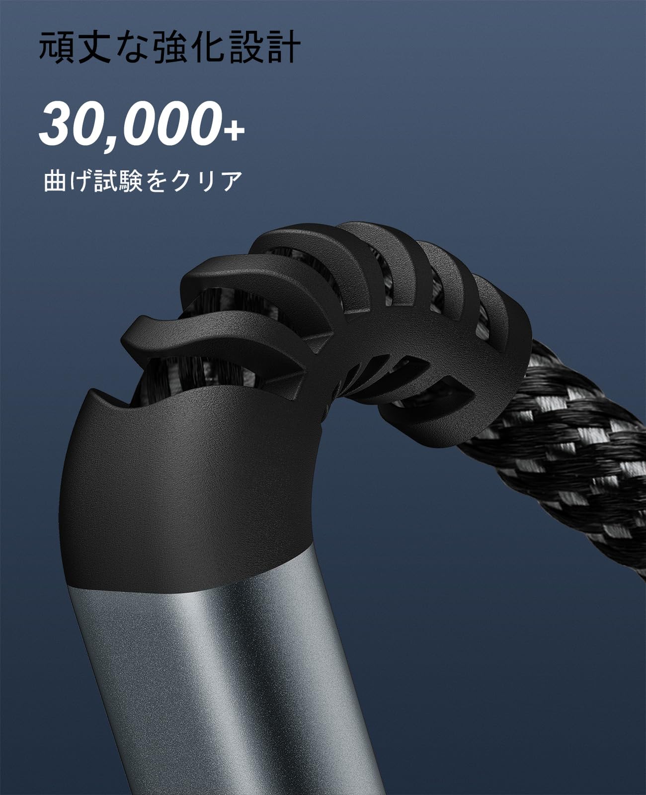 最も耐久性優れるPVCによって作られて、数千回以上の折り曲げテストに合格しており、そのため劣化しにくく、断線、短路防止を工夫し、根元部にも耐久性を考慮した断線しにくい構造になっています。