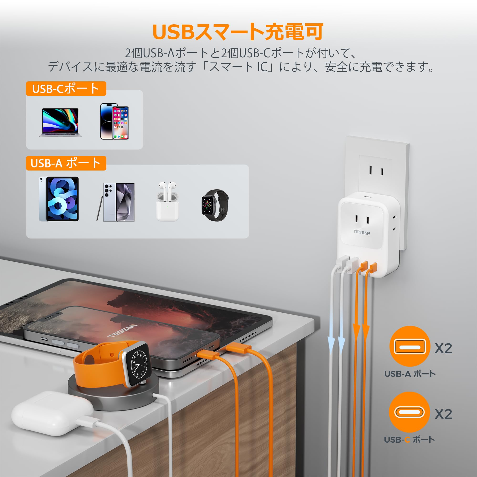■ 【USB-Cポート付】このusb 電源タップは二つのtype-aポート及び二つのtype-cポートがあります。