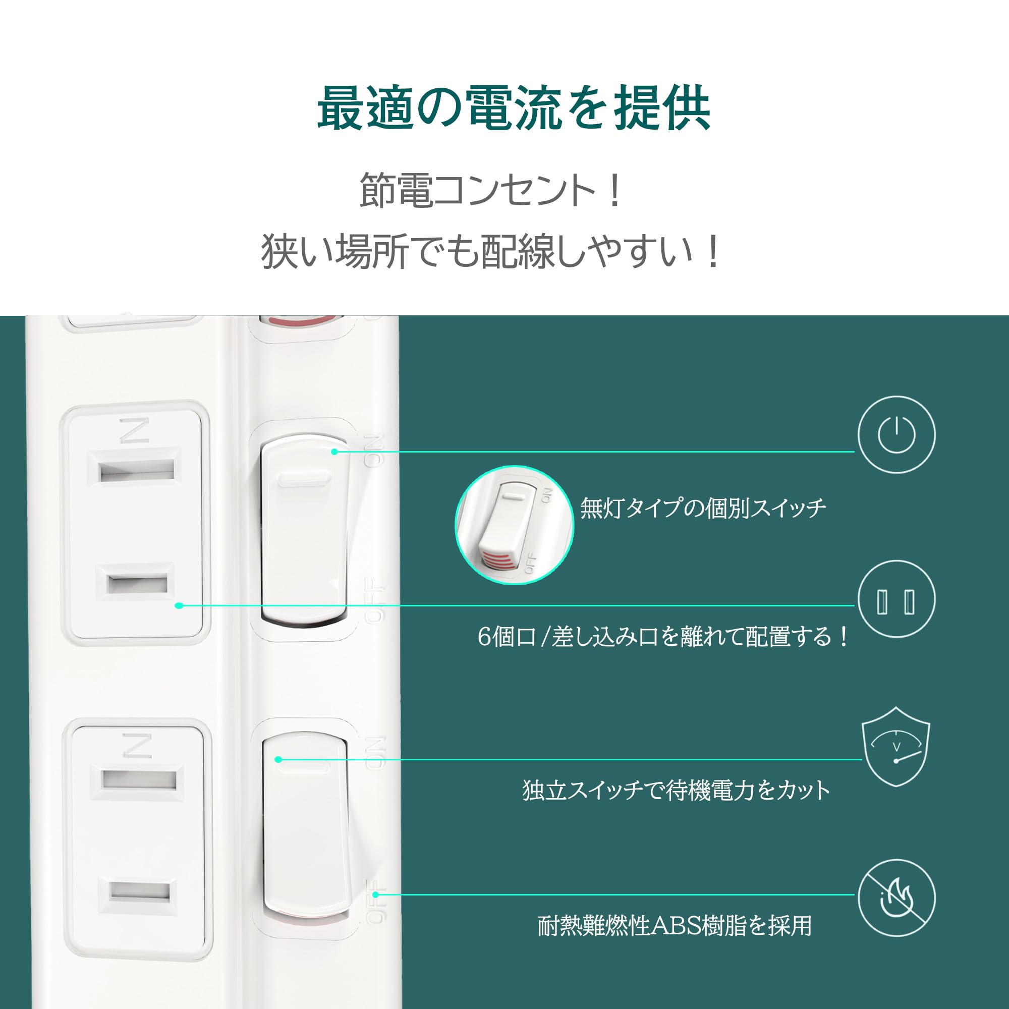 コンセントを抜き差しすることなく、電源をこまめにON・OFFできます。