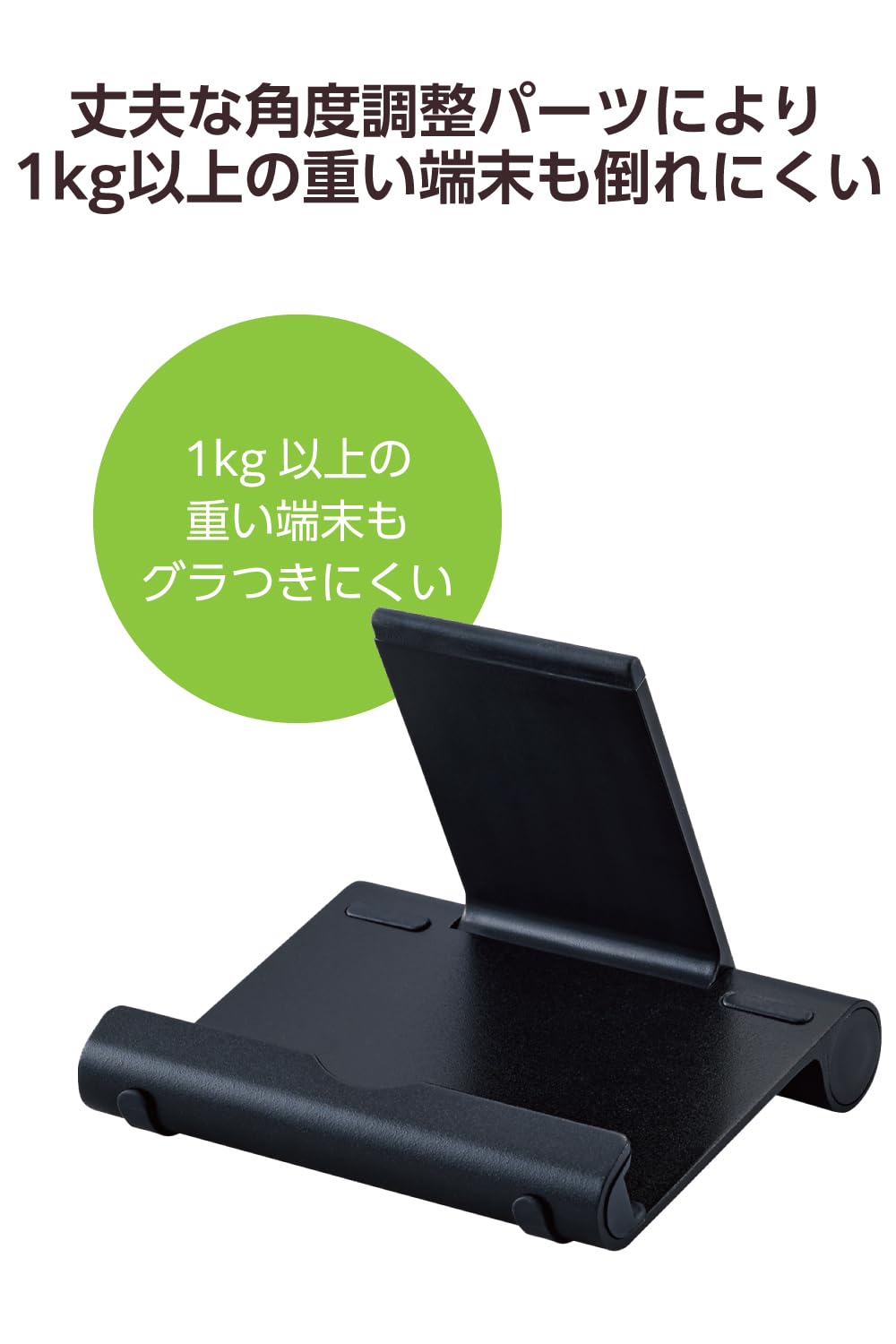 エレコム タブレット スマホ スタンド 4.6~12.9インチ対応 10段階 角度調節 角度固定 折り畳み時 厚さ約2cm 軽量 持ち運び 【 iPhone iPad Pro Air mini FireHD Huawei Galaxy GooglePixcel Switch 】 ブラック TBWDSCMPTBK