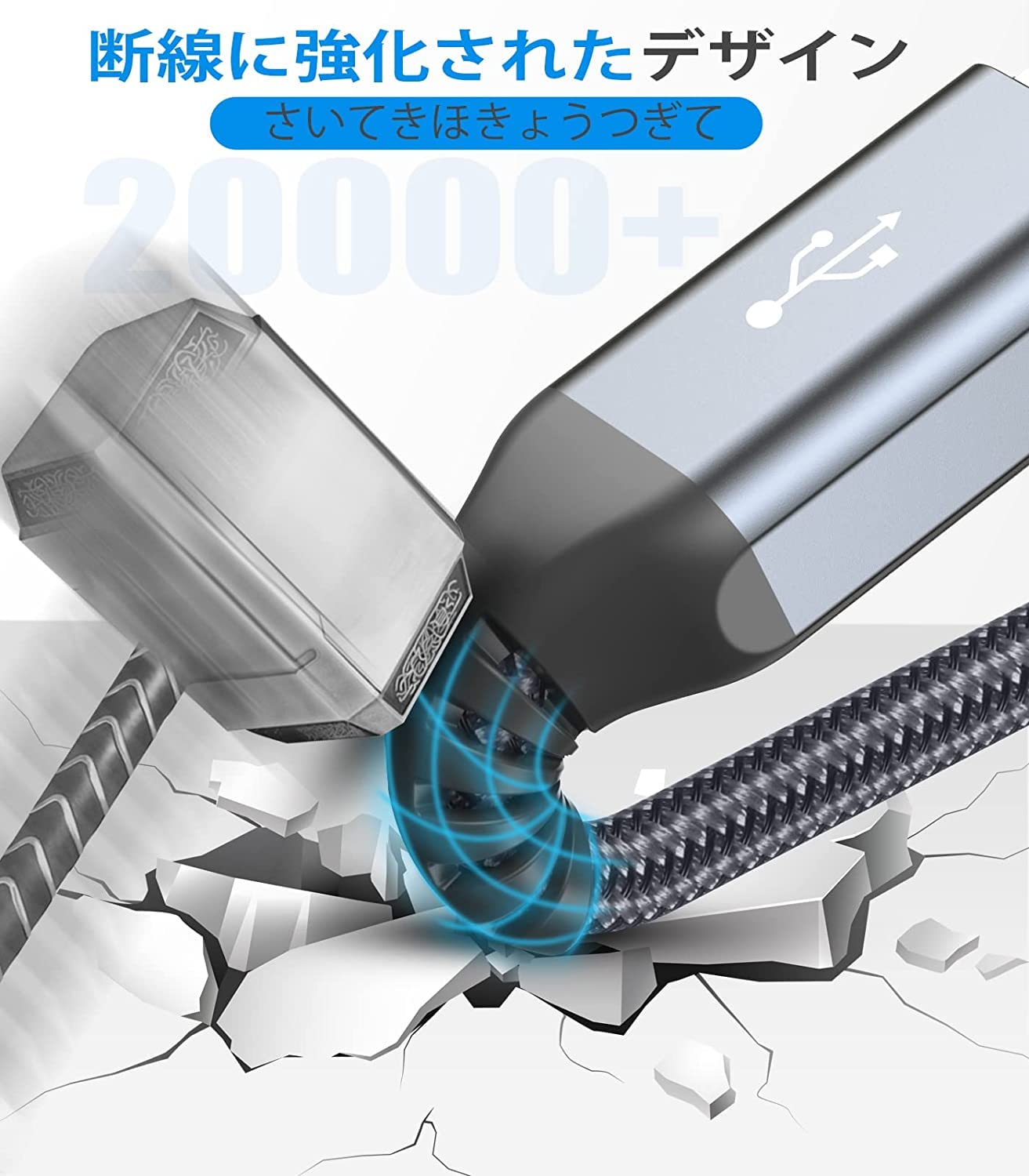 20000回以上のケーブルの曲折テストに耐えることができます。