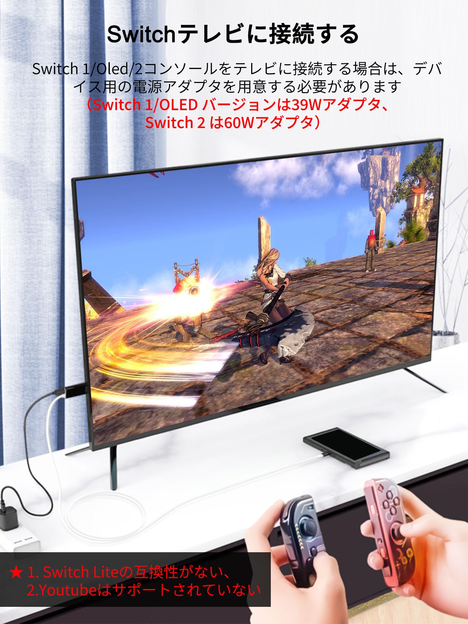 ■ 【Switch ドック不要】Switch用のドックを使用しないで、本製品のケーブルを接続するだけで簡単にテレビやディスプレイへの映像出力が可能です。