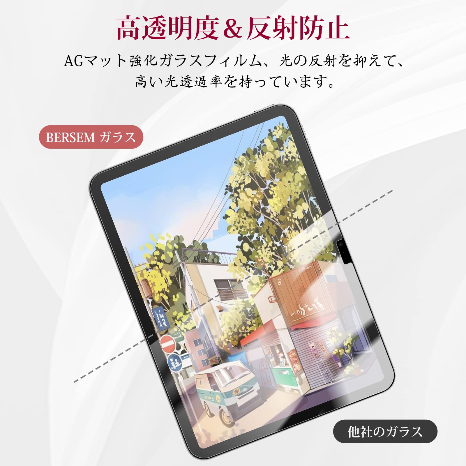 ■ 【高透明度&反射防止】BERSEM 強化ガラスフィルムはAGマット強化ガラスを採用されて、光の反射を抑えて、高い光透過率を持って、スクリーン元々の明るい画質を損なわなく、そのままに楽しみます。