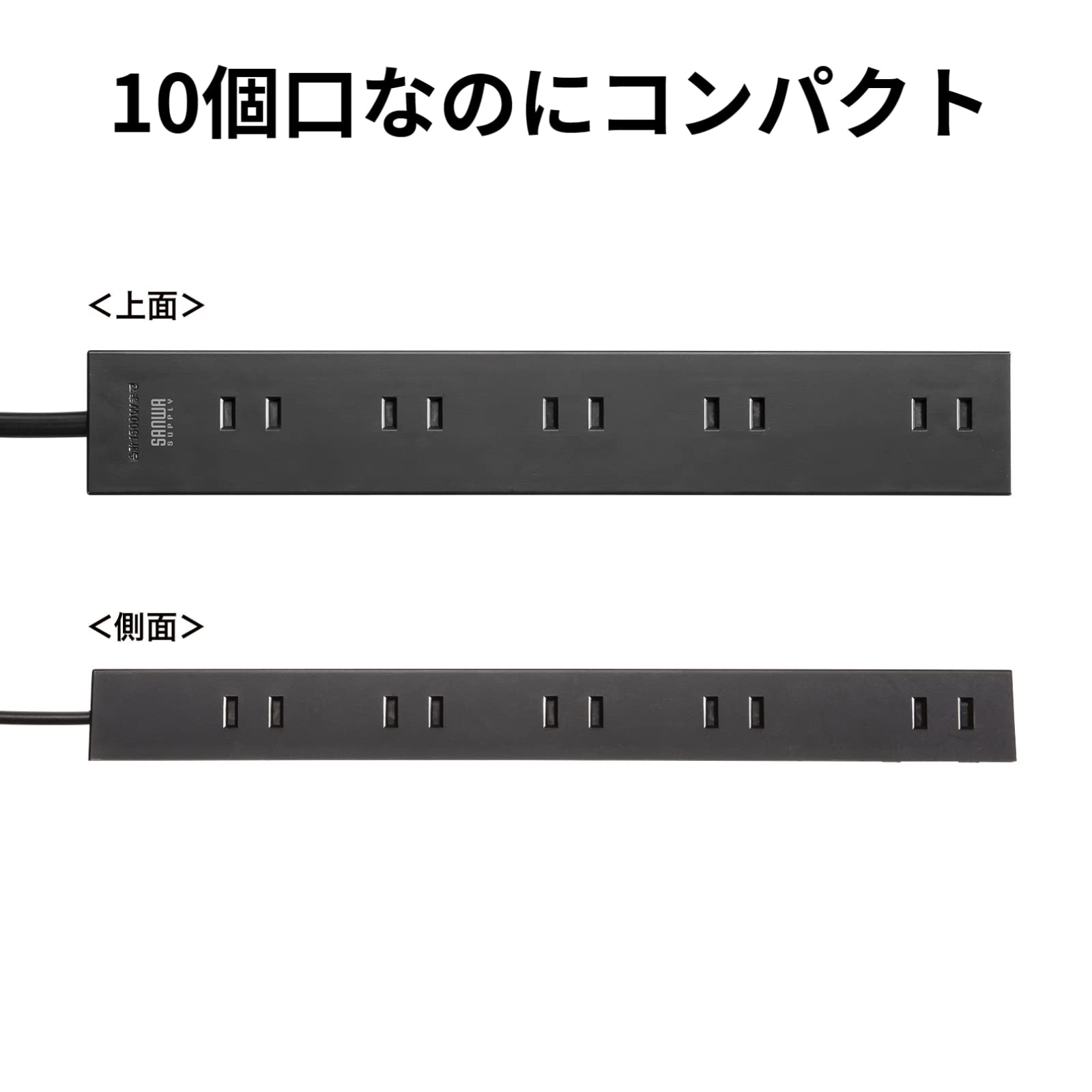 サンワサプライ(Sanwa Supply) 電源タップ 10個口・2P (1m) たくさん挿せるレイアウト 強力ネオジムマグネット ほこりシャッター スイングプラグ ブラック TAP-2210-1BK