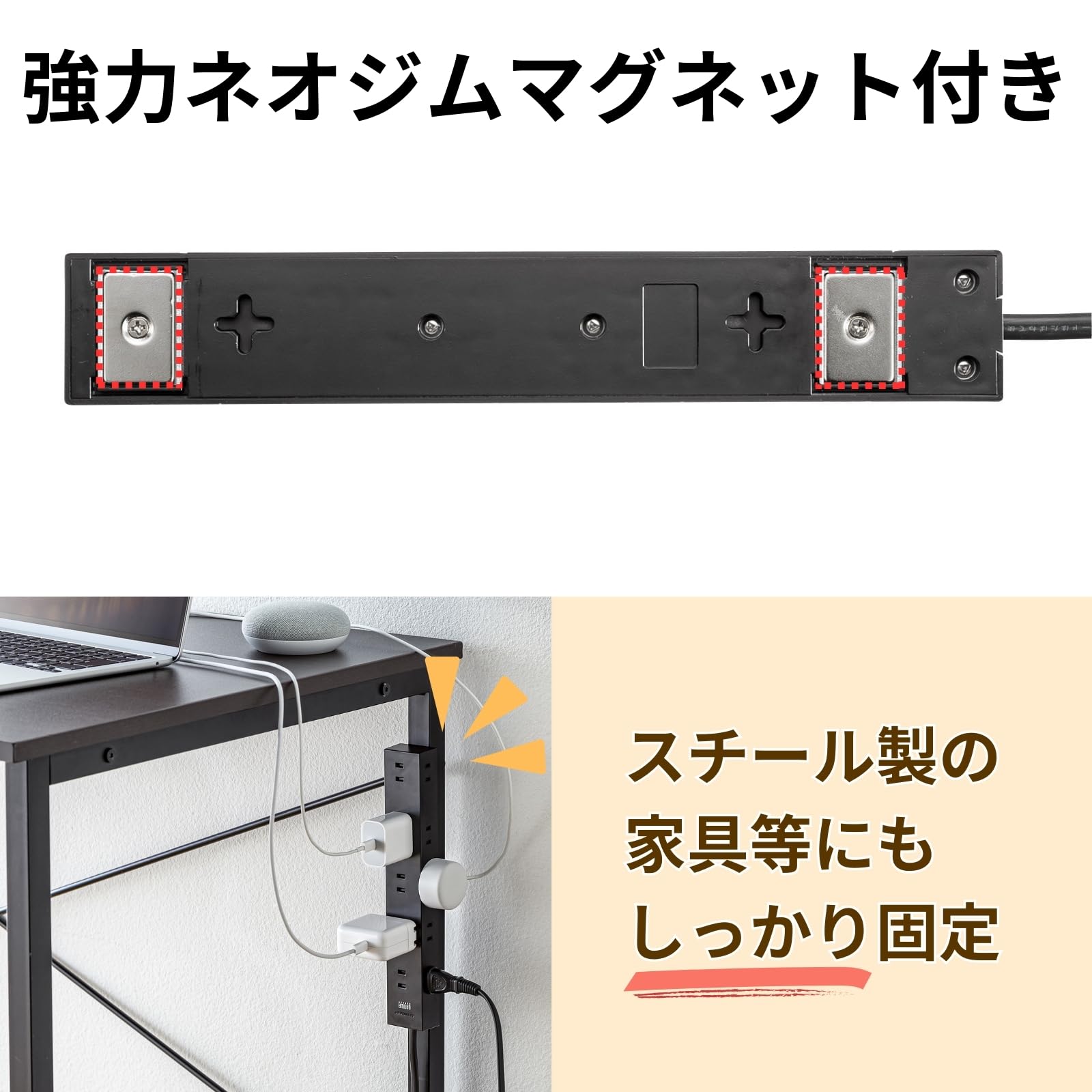 ■ マグネット付きなので、スチールキャビネット・デスクに取り付けできます。