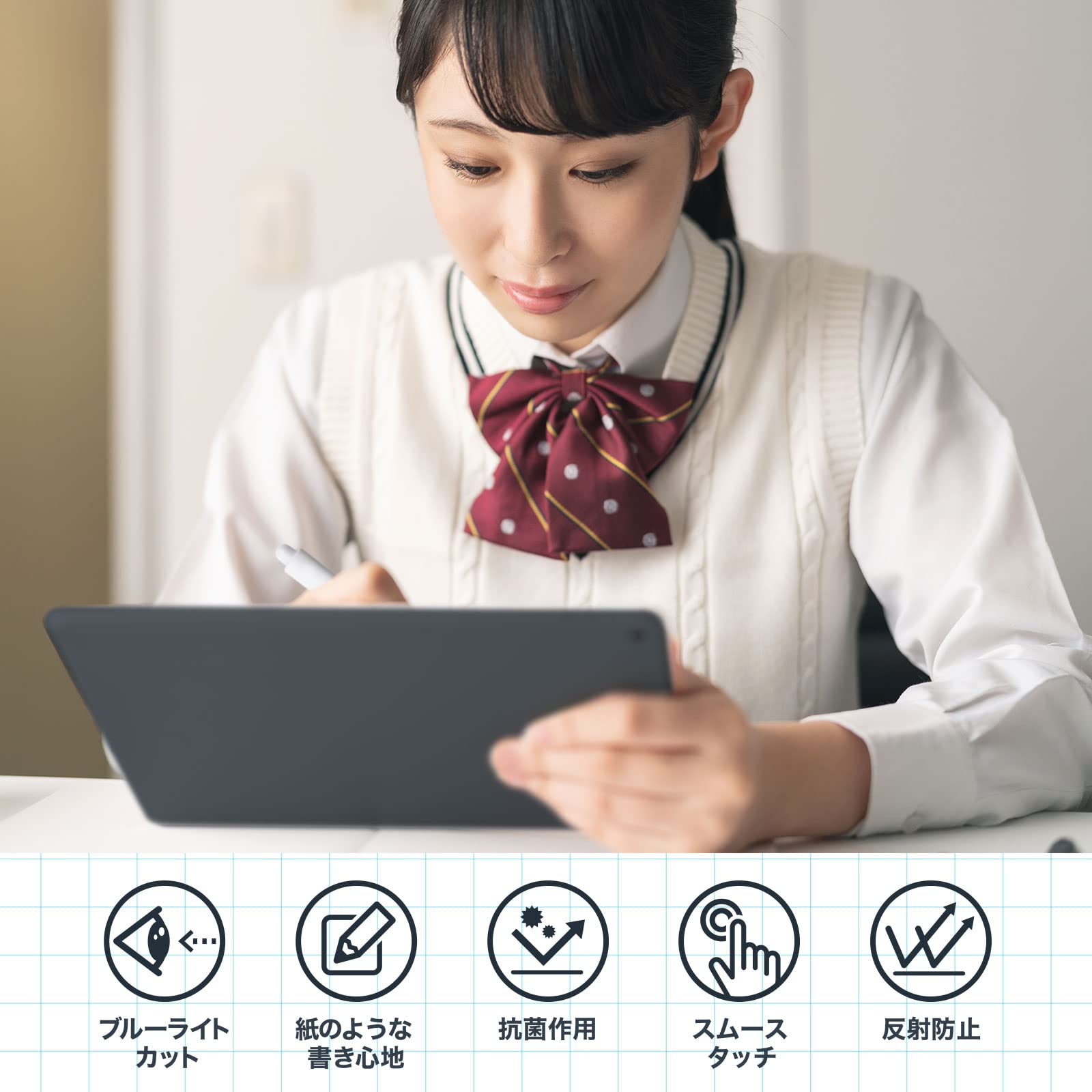 スマイルゼミ スマイルタブレット4 対応 保護フィルム ペーパーライク フィルム 紙のような書き心地 ブルーライト カット 反射低減