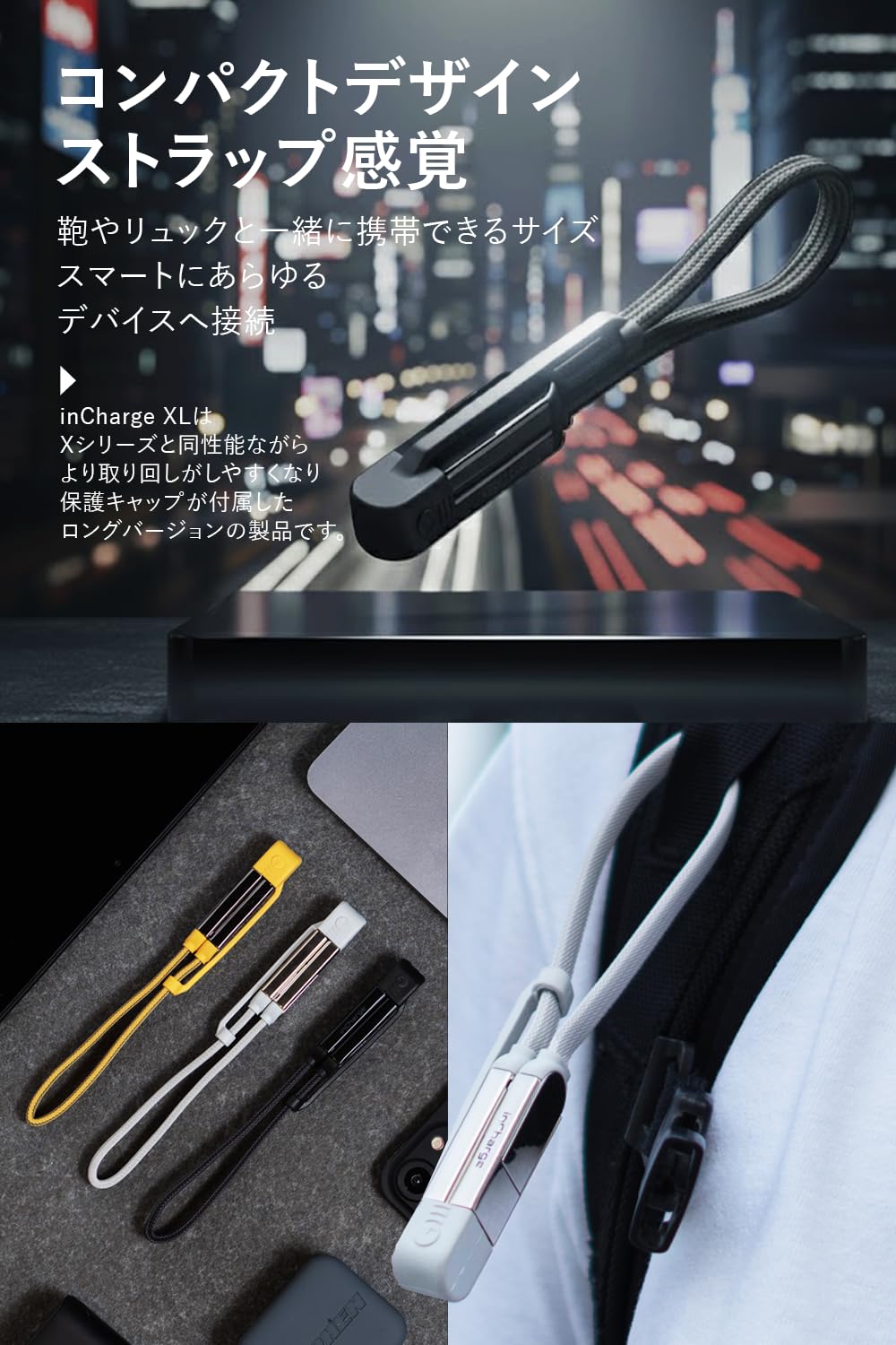 Rolling Square 【公式】inCharge XL 30cm 充電ケーブル マルチUSBケーブル 6-in-1 100W 超高速充電 スマホ タブレット ノートPC USB-C Lightning MicroUSB データ転送 30cm 高耐久ケーブル 持ち運び便利 3D保護カバー OTG電力転送 ローリングスクエア インチャージXL (アーバンブラック)