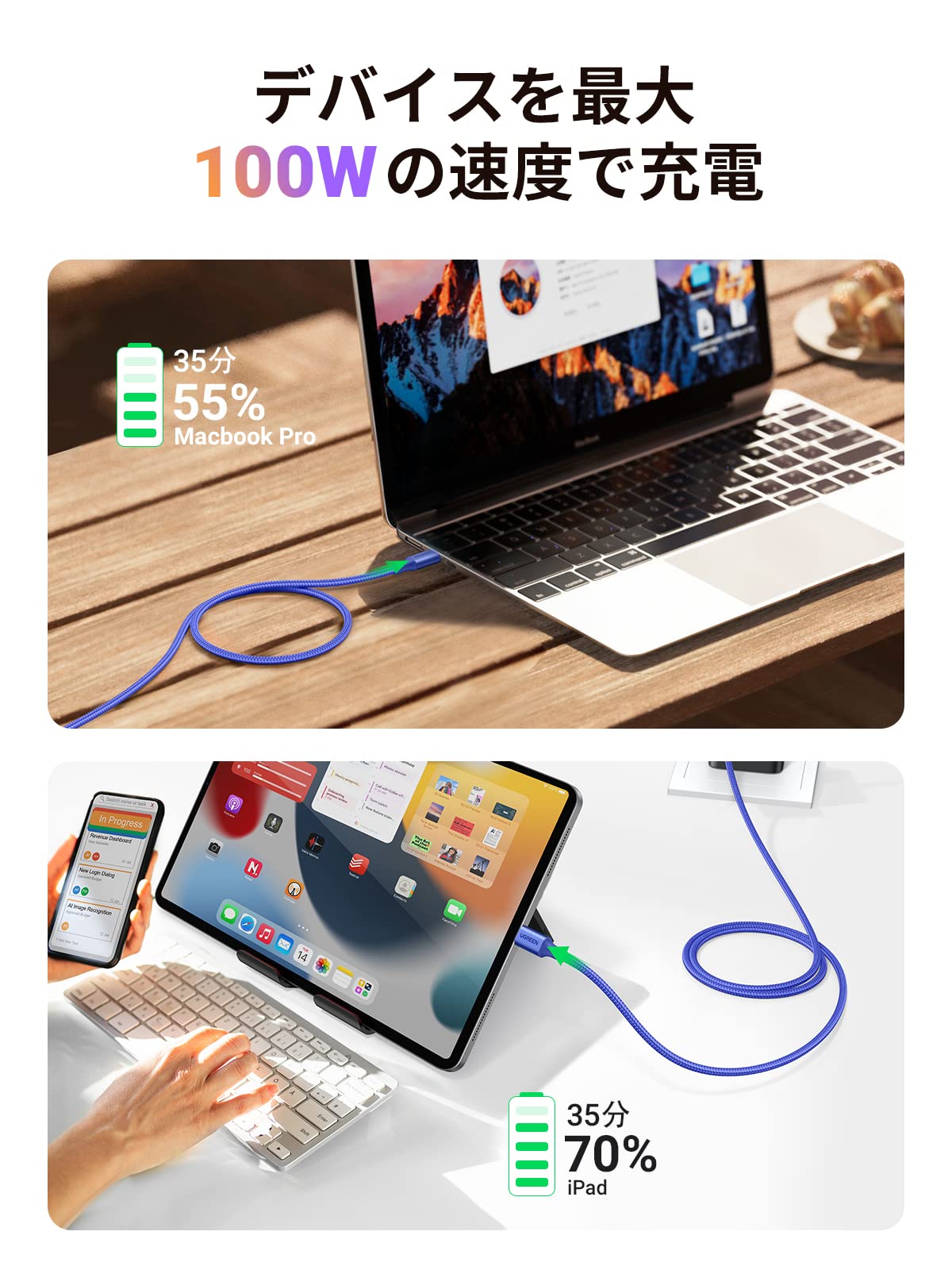 ■ 【最大100Wの超高速充電対応】UGREEN usb c ケーブルはUSB PD技術に対応し、最大100W (20V×5A)まで安全かつ安定して出力できます。